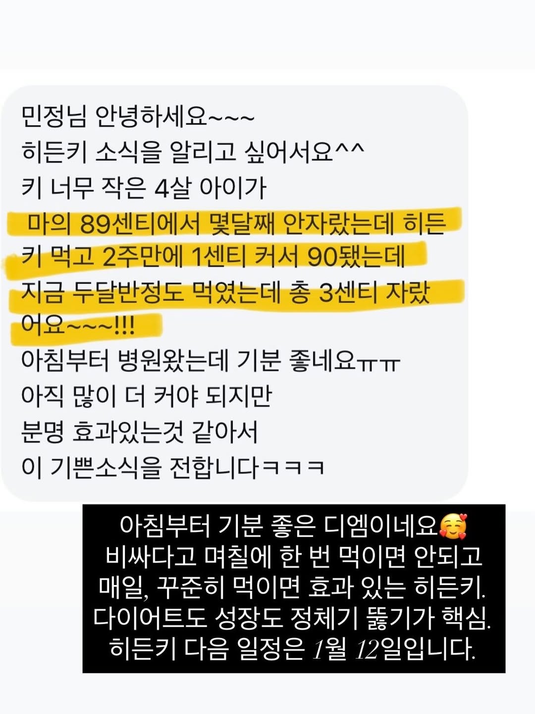 히든키는 성장영양제로, 꾸준히 매일 한 포를 먹여야 효과를 볼 수 있습니다. 액상과 츄어블 형태로 제공됩니다.