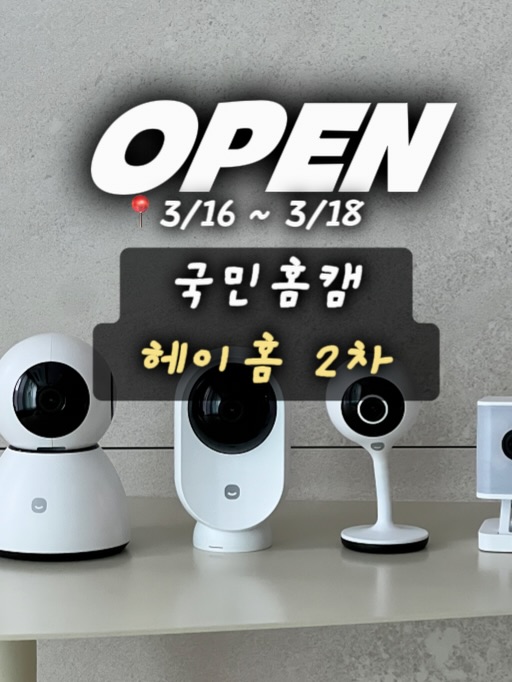 아이키우는 집 필수템 국민홈캠 헤이홈의 2차 공동구매입니다. 1+1 세트 할인 혜택과 5M 케이블 업그레이드, 클라우드 서비스 추가 옵션이 있습니다. 고화질 카메라로 아이를 안전하게 관찰하세요.