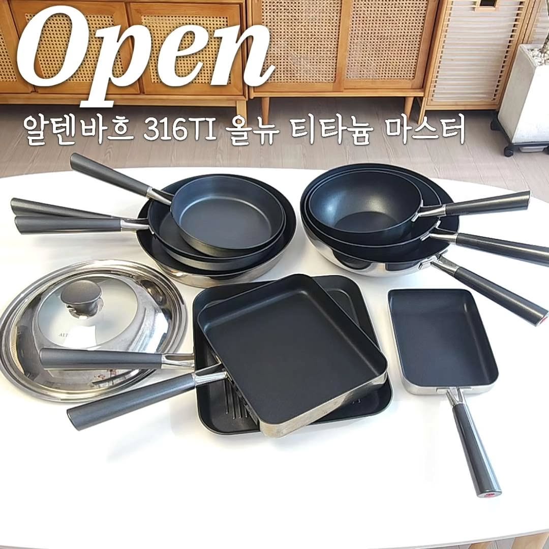 코팅 후라이팬 끝판왕 알텐바흐 316Ti 올뉴 티타늄 마스터 오픈! 매일 써도 코팅 걱정 없는 팬으로, 긁힘과 마모에 강하며 열전도와 열보존력이 뛰어난 제품입니다.