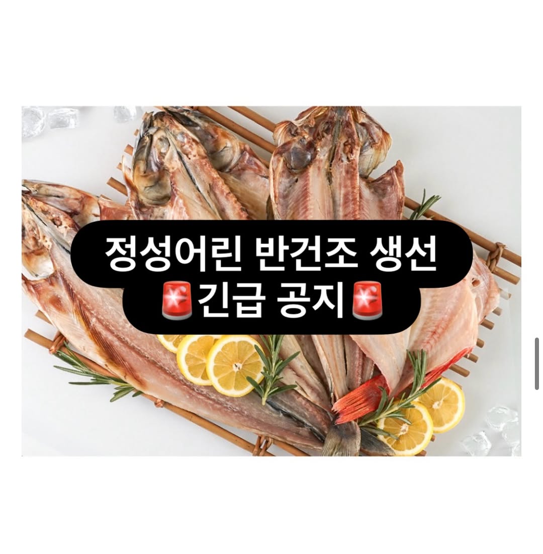 반건조 생선의 공동구매가 긴급하게 일정 변경되어 오늘 오전 10:30까지 진행됩니다. 일부 주문은 크리스마스 이후 배송될 수 있습니다.