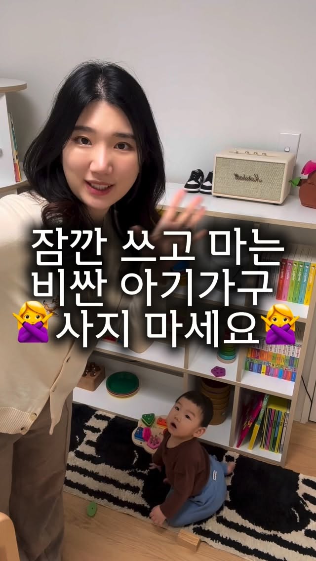 교구장과 책장이 결합된 아기 가구로, 책과 장난감을 한 번에 수납할 수 있으며, 튼튼한 자재와 안전 소재로 제작되었습니다.