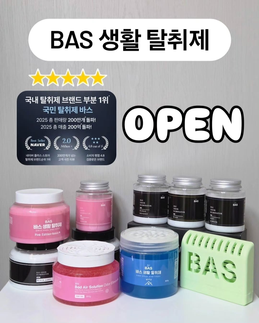 #공구오픈 #바스탈취제 🩵공구일정 : 4/27 - 30 ➡️ 알림릴스 이벤트도 30일까지🎁‼️ ( 신상핑크겔🩷 5분께 드립니다🩷 ) 🩷[구매완료+번호 뒷자리] 남겨주시면 5분뽑아 3000원 캐시백도 해드릴께요🩷 ------------------------- 시간이 흐르면서 수많은 제품들이 나오지만 그.럼.에.도. 국민 탈취제 1위는 바스🥇 백악관 탈취제로도 이미 유명하잖아요👍 바스는 10년넘게 탈취제만 만들어온 브랜드예요 한 분야만 연구한 브랜드가 어떤건지 수많은 후기들이 증명해주는 제품입니다 솔직히 .. 모르시는 마미 없으시죠 ? 이거 진짜 대박이잖아요 집냄새 . 악취 다 잡아버립니다 단 한번만 구매해 사용하신 분, 전 본적도 없어요 제 주변 집들은 전부 바스거든요✨️ 이걸 공구하는 저는 성덕. 영광 그자체🙇♀️ ✨️✨️✨️✨️✨️✨️✨️✨️✨️✨️✨️✨️✨️ 새집증후군으로 고생하는 친구에게 선물해줬는데 이틀만에 싸악 사라졌다는 연락🔥 화장실 악취때문에 스트레스 받아하는 친구에게 선물했는데 하루만에 이거 더 사야겟다‼️라는 연락 듣는 제 찐 애정템 💞💞💞💞 ✨️✨️✨️✨️✨️✨️✨️✨️✨️✨️✨️✨️✨️ 집들이 선물해주고 어깨가 으쓱해진 적이 한두번이 아니랍니다👏👏 향으로만 그냥 덮어버리는 그런 방향제 절대 아니고❌️ ✅️ 암모니아 99.4% 제거 ✅️ 트리메틸아민 94.9% 제거 악취분자에 달라붙어 ⭐️냄새의 근본 자체⭐️를 잡아버리는 악취보다 뛰어난 탈취력을 가진 제품이예요 바스 클래식라인 겔타입은 가장 오래 사랑받는 제품으로 블루, 오렌지, 에메랄드 3가지 컬러와 향이 있으니 취향에 맞게 골라서 구매하세요🥰 고체타입은 쏟을 위험이 없어 편하고 미니사이즈는 차량용으로도 아주 좋아요 ✨️냄새 많이나는 곳엔 겔타입 -> 개인적으로 욕실 강추 ✨️은은한 향으로 탈취를 원하시면 고체타입 ✨️냄새에 예민하신분이라면 무향(플레인) 바스는 방향제가 아니라 냄새근본을 제거라는거라 무향도 효과가 좋습니다🫶 ✅️ 사용면적 베이직 : 8-10평/ 미니 : 2-3평 좁은공간 ✅️지속기간 베이직 : 3-4개월/ 미니 : 1-2개월