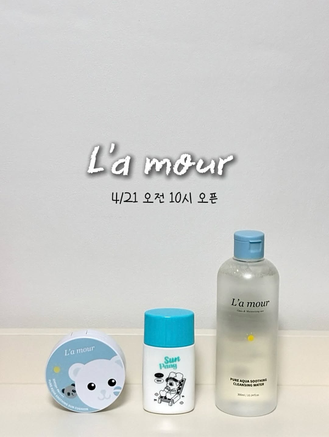라무르 선쿠션, 선로션, 클렌징워터! 4/21 오전 10시 공구 오픈 예정. 5가지 조건을 모두 갖춘 제품으로 아기 선 쿠션 중 최고 차단 지수와 논나노 무기자차로 안전하게 사용 가능.