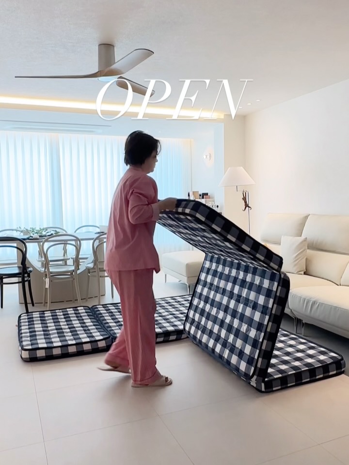 잠시후 10시 3단 접이식 매트리스 공구오픈! 접었다폈다 3초면 끝, 아이들도 쉽게! 이거 작년부터 사용한지 6개월 시댁 식구들 , 손님 자주오는 우리집 너무너무 잘 사용중이에요 쇼파있지만 주말엔 거실에 깔고 누워서 티비보기 딱입니다! 디자인 너무 이쁘고 100% 국내생산 심지어 무료배송! 유통마진 쫙 빠진 가격 너무 착하게 보여드립니다 30년간 매트리스만 만든 대륜침대 지퍼형 아닌 프리미엄 봉합방식! 바닥에 깔아도 허리 배김없이 탄탄한 고탄성 폼으로 너무 딱딱하지도 , 폭 꺼지지도 않고 몸 굴곡에 따라 안정감있게 딱 잡아줘요 안쓸땐 3단으로 접어서 틈새에 세워서 보관하면되니 자리차지도 없어요 아이들고 쉽게 접었다폈다! 정리도 혼자 가능합니다 착한가격 무배로 보여드려요! 영상속 컬러는 블루, 사이즈는 슈퍼싱글입니다 (슈퍼싱글 2개촬영) 🌙밤이오면 접이식 3단 매트리스 ✅공구기간 4/2 (목)10시 ~ 4/5 (일) 🎁구매완료이벤트 방수커버 10명 증정 (전번 뒷자리+구매완료댓글) ✅컬러 ▪️블루 ▪️레드 ▪️블랙 ✅사이즈 ▪️MS 미니싱글 750*2000*80T (mm) ▪️SS 슈퍼싱글 1100*2000*80T (mm) ▪️Q퀸 1500*2000*80T (mm) ▪️K킹 1600*2000*80T (mm) ▪️LK라지킹 1800*2000*80T (mm) ⚠️추가구매 가능한 방수커버는 100% 방수기능이 아닌 생활방수되는 커버로 매트의 오염방지로 생각해주시면되고 사용하고 계신 패드 깔아서 사용하셔도됩니다 ✅배송안내 밤이오면 매트리스는 가루날림, 모양변형을 최소화 하기 위해 주문 후 제작 상품으로 배송은 주문일 기준 10~14일 소요됩니다 🚛무료배송 ✔️30년동안 250만개 매트리스를 생산 ✔️100%국내 제작, 자체 공장 생산 ✔️유해물질 테스트 완료 ✔️HR고탄성폼 3단 매트리스 ✔️너무 폭신하지도, 푹 꺼지지않고 허리를 ✔️탄탄하게 받쳐줌 ✔️양면 사용 가능한 체크 무늬