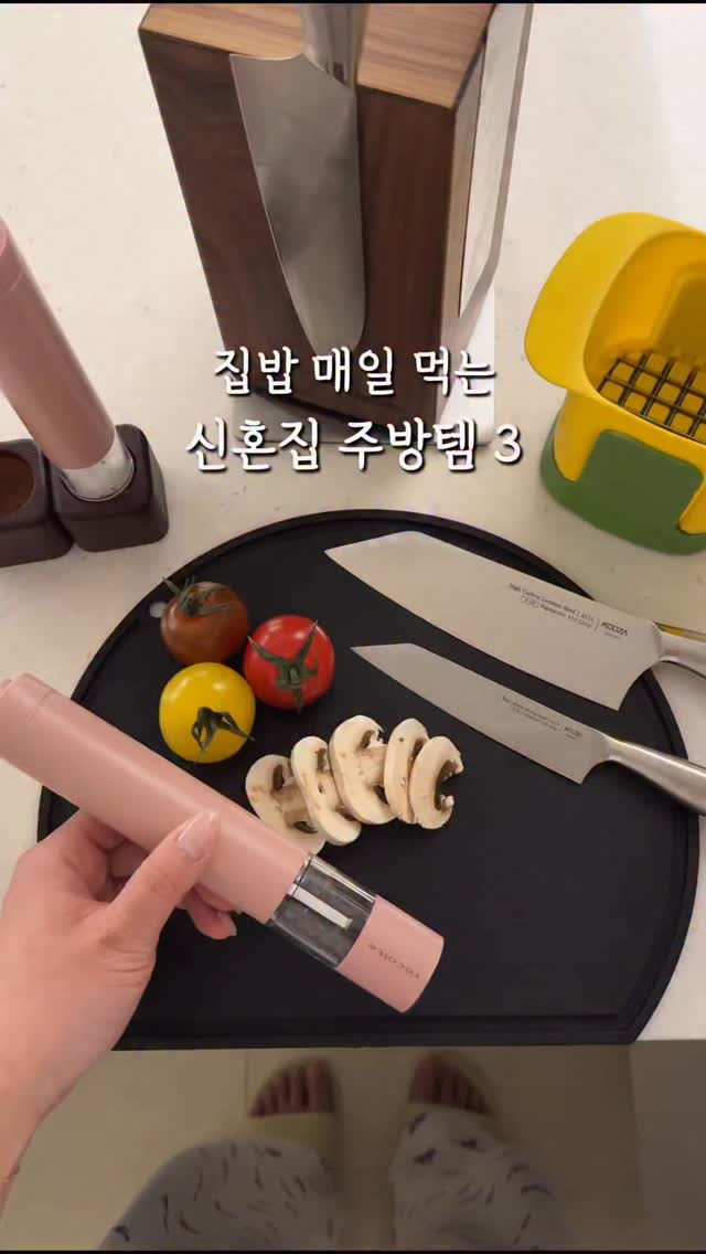 #공구예고 집밥 매일 먹는 신혼집 주방템!🧑🏻🍳🍳 최저가 알림 신청은 댓글 남겨주시면 💌오픈시 알림&구매링크 보내드릴게요! 제가 집밥하면서 매일매일 잘 쓰는 3가지💖 드디어 내일 부터 오픈이에요 ㅎㅎ 도마는 수입 제품이라 조금 오래걸렸어요ㅠㅠ🥹 이번에 쿠자,레꼴뜨 신상도 함께 준비했으니 최저가 알림신청은 댓글 남겨주세용🫶🏻 ✅1. 쿠자 쿠도 단품/세트 (📌4/3 최저가 오픈) 벌써 3년째 쓰고 있는 집밥 단골템!✨ 쿠자는 칼 날 부터 손잡이까지 이음새 없는 올스테인리스 소재로 위생적이면서 고급 스테인리스 316 소재로 ✈️항공부품해도 사용되는 최고급 소재라 한번 사면 평생 쓰게 되는 칼이에요!👏🏻 3년 사용하면서 녹 전혀 없었구요 🙅🏻♀️ 한번도 칼날을 갈아주지 않았는데도 절삭력 하나는 끝내줘요..👍🏻 ✅2. 일본 이와노 도마 (📌3/30 최저가 오픈) (수입 제품으로 한정수량 입니다!) 5개월을 기다리고 기다린 이와노..!🫢 서브 도마로 휘뚤마뚤 진짜 잘 쓰이는데 김치,해산물도 손질해도 색배임,냄새배임 없고 마구 긁어도 칼자국 걱정 없어요! 얇아서 보관도 컴팩트한데 가볍기까지 해서 휘뚤마뚤 사용 할 가벼운 서브 도마 찾으신다면 꼬옥 추천드려용🙏🏻 ✅3.레꼴뜨 그라인더 (📌4/1 최저가 오픈) 이번에 핑크 색상도 함께 준비했어요💕 기존에 사용한 그라인더는 부피가 커서 꺼내 놓기도 보관하기도 애매했는데..😅 레꼴뜨는 딱 3/1 크기로 슬림하고 컴팩트해요! 요리에 맞게 얇게,중간,굵게 원하시는 입자로 조절 가능합니다!🧂 저희집은 두세트 쟁여뒀는데 매일매일 뽕 뽑아요 ㅎㅎ 오랜만에 돌아온 신혼집 주방템👩❤️👨 최저가로 소개드릴게요💕 이벤트도 잔뜩 준비했어용🎉🎉 #신혼살림 #집밥요리 #주방필수템