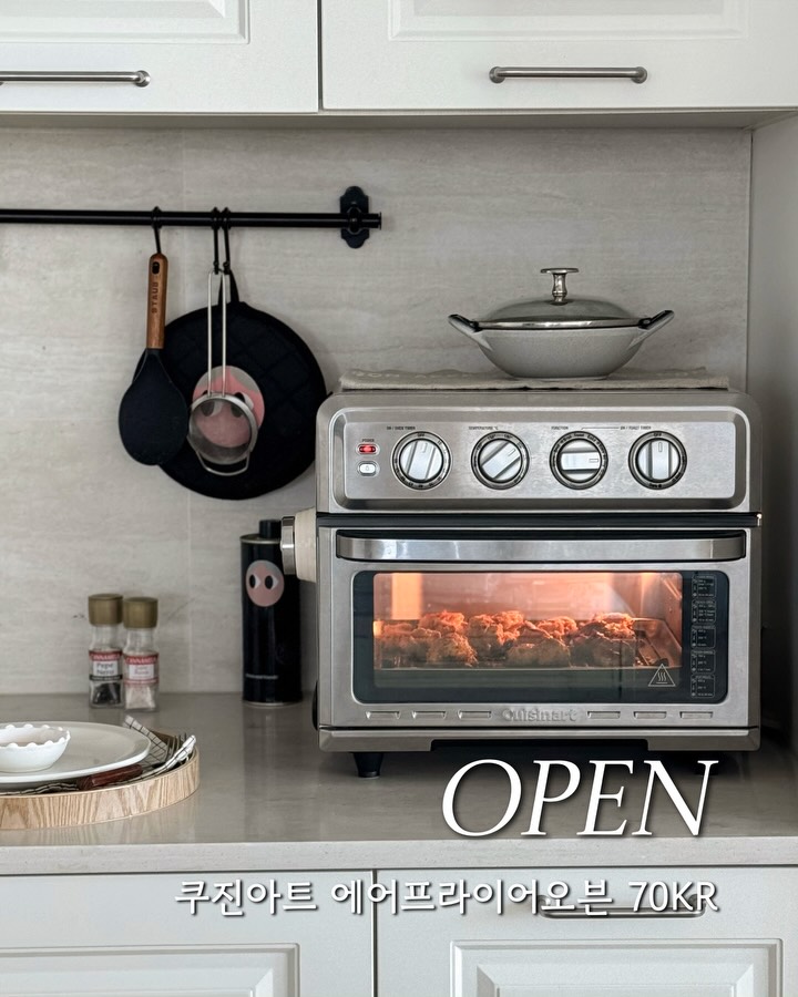 🧡쿠진아트 에어프라이어오븐 70KR 공구예고 주방에 가전 하나씩 늘어나다 보면 공간이 금방 부족해지죠🙂 에어프라이어 따로 오븐 따로 토스터 따로 두다 보면 자리도 차지하고 정리도 어렵고요 하나로 해결되는 제품 준비했어요 📌 쿠진아트 에어프라이어오븐 70KR 에프, 오븐, 토스터, 그릴 기능까지 한 번에 사용할 수 있는 제품이에요 17L 넉넉한 용량이라 피자나 통닭 같은 요리도 여유 있게 조리 가능하고 여러 가지 요리를 한 번에 준비할 때도 정말 편하더라구요 기름 없이 공기로 조리해도 겉은 바삭하고 속은 촉촉하게 완성되고 소음도 적어서 부담 없이 사용 가능해요 투명창과 내부등이 있어서 조리 상태 확인도 편하게 가능하고 디자인도 깔끔해서 주방 인테리어까지 살려주는 느낌이에요 포유홈에서 특가로 만나보실 수 있게 준비했어요✨ 📢 4월10일-재고 소진시 마감 📍빠른구매 원하시면 아래 흔적 부탁드려요 :)