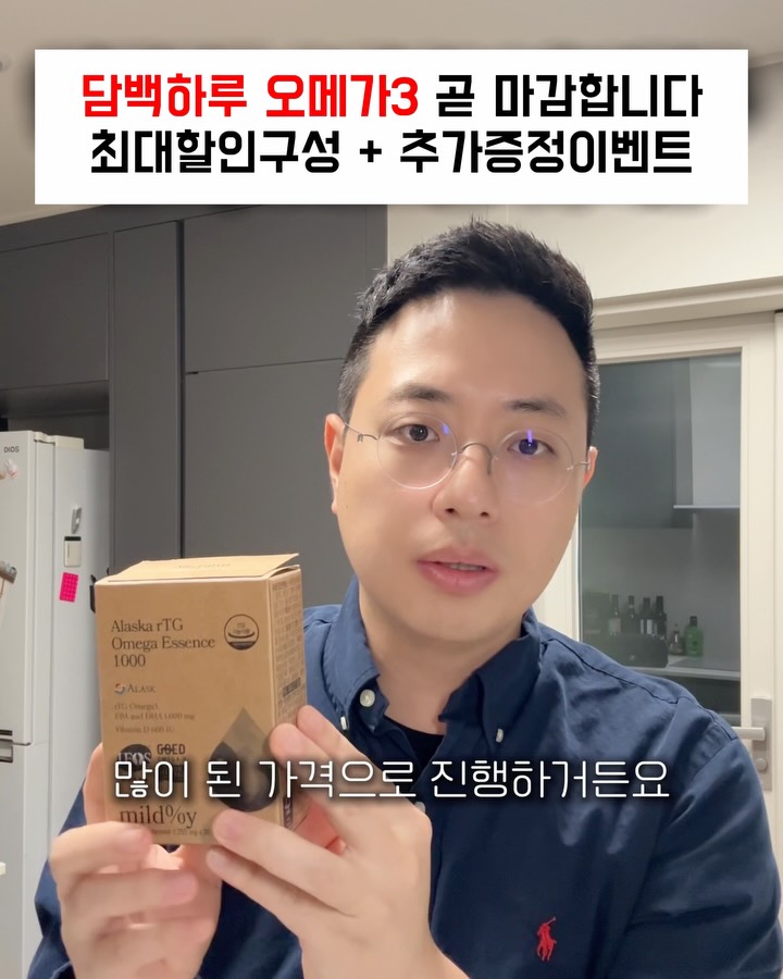 🎁구매완료 이벤트 피드는 따로 있습니다 (프로필에 고정해두었어요) ⚠️이벤트 내용! (총 100명) 구매후 이벤트 피드에 구매완료 댓글만 남기면 참여 완료! ❗️이 피드 아니고 고정된 이벤트 피드에 남겨주세요💚 🎁랜덤으로 100명 선정해서 본품 오메가3 한 통 더 보내드려요💛 총 100명이라 당첨확률이 높습니다👍👍 공구 마감 후 스토리에 발표합니다! ✔️ 1달분 13990원 ✔️ 최다구성 전원 비타민D 1box증정 담백하루 오메가3곧 마감합니다 ✅ 공구 제품 소개 담백하루 알래스카 알티지 오메가 에센스 입니다. 이제품은 1알당 오메가3 함량 EPA+DHA = 1000mg로 만족하실만한 함량 입니다. 80% 순도의 원료를 알래스카오메가 원료로 만들었습니다. 주목할만 한 점은 100% 단일 어종 알래스카 폴락만을 사용하였다는 점인데 하나의 어종만 사용한다는 것은 관리를 아주 철저히 한다는 것이라 생각하시면 됩니다. 관리 잘 된 원료의 가성비 있는 제품원하시면 담백하루 제품 충분히 고려하실만 합니다.