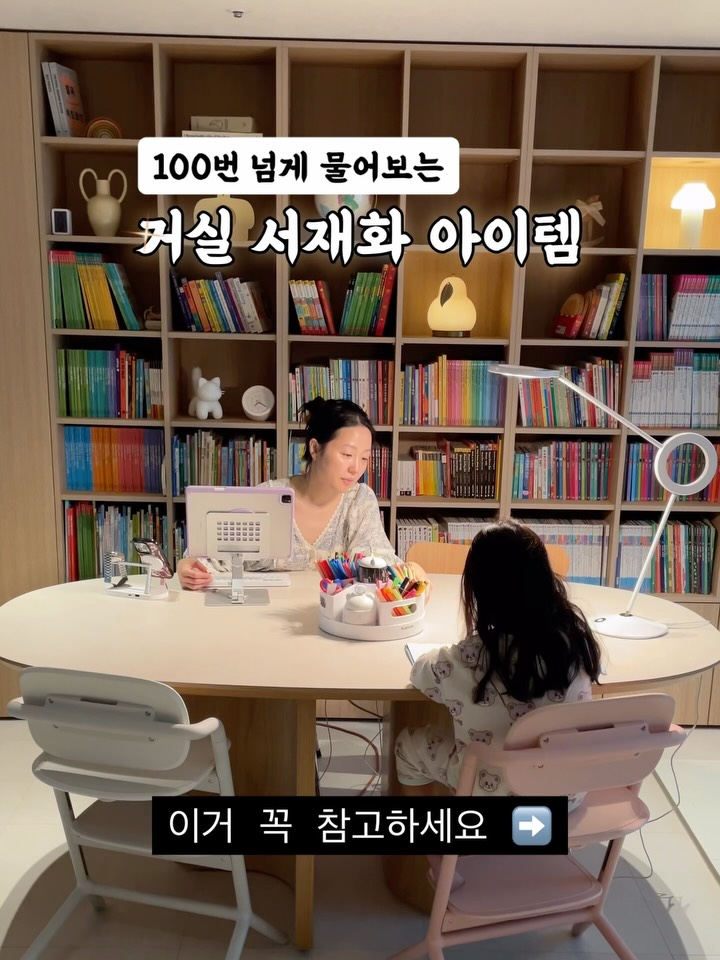 100번 넘게 질문 받은🗣️ 거실 서재화 아이템 6가지! 200% 만족하는 우리집 거실 서재존 아이템들! 문의 많은 제품들 정리했으니 참고하셔요🤗 📌플레이블 독서대는 오늘 4/19(일)까지 최저가 공구중! 댓글에 ‘링크’ 남겨주시면 최저가링크 보내드릴게요💌 1️⃣플레이블 2단 독서대 아이들 바른 자세에 필수인 독서대📖 프리미엄 SE0 등급 자작나무 합판에, HPL 코팅으로 오염 관리도 편하고 디자인도 너무 예뻐 인테리어 효과까지 있는 독서대 찾는 다면 이거 추천👍 👉오늘까지 최저가 공구중! (~4/19 일 자정 마감) 2️⃣바이리네 모먼트 테이블 인테리어 해치지 않으면서 아이들과 함께 쓰기 좋은 대형 테이블이에요! 세라믹 상판이라 아이들이 막 묻혀도 관리 편하고, 라운드 형태라서 부딪혀도 안전해서 좋아요👍 3️⃣라문 아물레또 조명 (오리지널) 시력보호에 특화된 조명인데, 디자인도 너무 예쁘죠? 이거 하나로 대형 테이블 전체다 커버 가능하고, 각도 조절, 밝기 조절도 쉬워서 좋아요!! 4️⃣플레이조이 회전 정리함 늘 책상위에 아이들 필기구가 널부러져 있는게 지저분해 보여서, 한꺼번에 정리 가능한 회전 정리함을 들였어요! 칸칸이 나눠져 있어 다양한 필기도구 구분해서 넣기 좋고, 회전형이라 아이들이 돌려가며 필요한거 찾아 쓰기 좋아요! 5️⃣싸이벡스 레모 하이체어 한손으로 높낮이 조절가능해 언제든 아이 성장에 맞춰 좌판&발판 조절 가능해요! 세련된 디자인 덕에 인테리어 효과도 굿✨ 안전성도 써본 하이체어 중에 제일이에요👍 6️⃣전면 책장 거실 한면을 책장으로 만드니 도서관 같은 분위기에 책도 더 자주 보게 되더라구요📚 🪄책장은 기성품이 아니라 인테리어 턴키업체에서 직접 제작해주신 ‘제작가구’ 입니다! 가격 문의 주셔도 답변이 어렵습니다🙏 #째째홈 #플레이블독서대공구 #거실서재화 #아이있는집거실