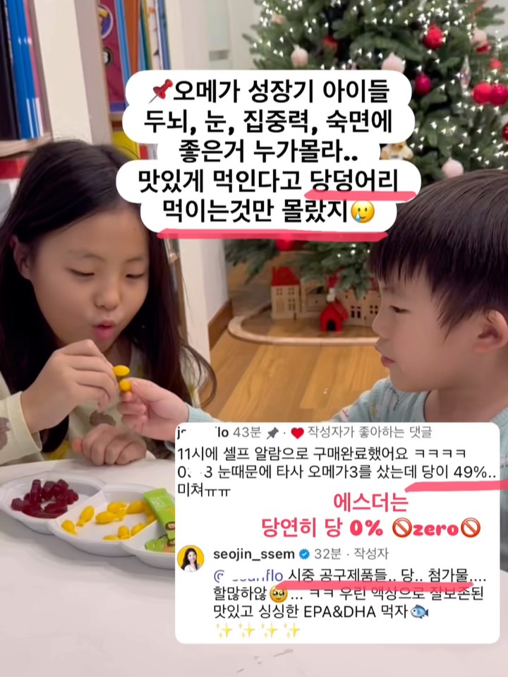 사실 시중에 많고 많은 키즈오메가 ㅜㅜ 첨가물 당 함량은 안보시고 그저 맛있다는 광고에 혹해서 사보셨을텐데요.🥹 (지금이라도 성분/원료社 꼭 확인해줘🙏🏻) 에스더 오메가는 아이들 먹이는 목적에 맞게 🔴두뇌인지 발달에 도움을 주는🔴 *DHA 함량* 중심으로 배합했는데 더 비려지긴 커녕 맛있는 레몬오렌지 사탕 그자체 게다가 당함량은 0g zero.!!! 라면 반칙아닌가요? 진심 너무 좋아..🩷 연구 논문이 가장 많고 아무리 많이 먹어도 부작용이 없는 자라나는 아이들에게는 필수중에 필수인 오메가를 처음 들어보는 회사도 아니고 에스더가 세계적인 원료사 DSM에서 공수해와서 만들었는데 #1BOX 1만원대 이건 진짜 왜 안사죠? ㅎㅎ 📣댓글로 아무하트<💜> 또는 ’링크‘ 달아주시면 DM으로 👉 최저가 구매링크 보내드려요! *프로필에서도 구매가능 제가요.. 분당 학군지 제이미엄마로서 두뇌, 눈건강, 집중력 끌올에 진심인거 다들 아시잖아요? (자녀교육에 미친 교사엄마로 공중파 방송 타려면 보통 극성이어서는 안됨..) 근데 말이죠, 언제부턴가 어른들만 필수로 챙겨먹던 오메가3를 아이들도 먹어야한다는 광고가 제눈에 보이더라고요...? ”두뇌발달“ / ”눈건강“ / ”집중력저하“ 3개 키워드보이면 일단 결제부터하는 K학군지 엄마.. 공감하시는 분 많을 듯해요ㅋㅋ😇 문제는 알약을 못먹는 아이들은 액상을 터뜨려 먹어야하다보니 너무 비리거나 비린맛을 잡기위해 당, 첨가물을 너무 많이 넣었거나 비리지도, 첨가물도 없으면 오메가3 함량이 매.우. 낮다거나.. 근데 에스더 오메가는 아이들 먹이는 목적에 맞게 두뇌인지 발달에 도움을 주는 *DHA 함량* 중심으로 배합했는데 액상 원료 변형없이 유지하면서 비린맛 잡기위해서 1년동안 계속 맛테스트하고 DHA 함량 높여서 리뉴얼하는거보고 이걸 누가 알아주나?.. 진짜 이렇게 제품 개발 하시는구나 그전엔 에스더 키즈라인이 있는것도 몰랐던 그저 글루타치온 광신도 에스더몰 회원이었는데. 협업하면서 에스더 박사님의 건강에 대한 진심이 느껴졌어요..🥹 (역시 내 눈은 정확해😌) 블프때 가볍게 열어뒀는데 오메가, 멀티비타민 같이 많이들 담아가셨는데요. 좋은건 다들 알아보시나봐요 앵콜 요청주시고 기다려주셔서 정말 감사드려요😭 2026 원료 가격 상승으로 2월부터 가격인상 예정인데 1월 서진쌤 공구에서만 1+1 1박스 1만원대. 원가수준으로 데려왔습니다…🙏🔥 앞자리를 5에서 1로... 4번 바꿔왔다고요 여러분.. 이 가격은 아가들 모두 제대로 된 제품 먹었으면 한다고 계속 부탁드리고 부탁드려서 처음이자 마지막으로 얻어온 거라 다신 없을 예정이에요. 🌟오메가3 선택할때, 이건 꼭 체크해보세요! -비린맛을 잡기위해, 당 함량이 지나치게 높지 않는지 -성장기 아이들을위한 ”DHA중심“ 함유유지가 되어있는지 -중금속, 해양 오염 물질로부터 안전한 원료를 사용하는지 Q. 성장기 아이들에게 오메가3는 왜 중요한가요? A.두뇌발달, 눈 건강, 집중력, 염증 조절에 중요한 역할을 하는 오메가3는 Q. 멀티비타민 (비타민 B,D,C군) 섭취는 왜 필요한가요? A. 성장기 아이들은 ✔ 키·체중 성장 ✔ 면역 형성 ✔ 두뇌·눈 발달 ✔ 활동량 증가 → 필요한 영양소 양은 많아지는데, 실제 섭취는 불균형해지기 쉬워서 식사로 채우기 어려운 구멍을 비타민으로 메워줘야 하는데요. 각종 전염병이 유행하고 아이들 면역력이 특히 약해지는 요즘 비타민, 미네랄 챙겨야 할 것들을 한 알에 담았습니다. 📣댓글로 아무하트<💜> 또는 ’링크‘ 달아주시면 DM으로 👉 최저가 구매링크 보내드려요! *프로필에서도 구매가능 오픈피드에서 구매인증 이벤트 진행중이니 댓글 달아주세요!!🔫 #키즈오메가추천
