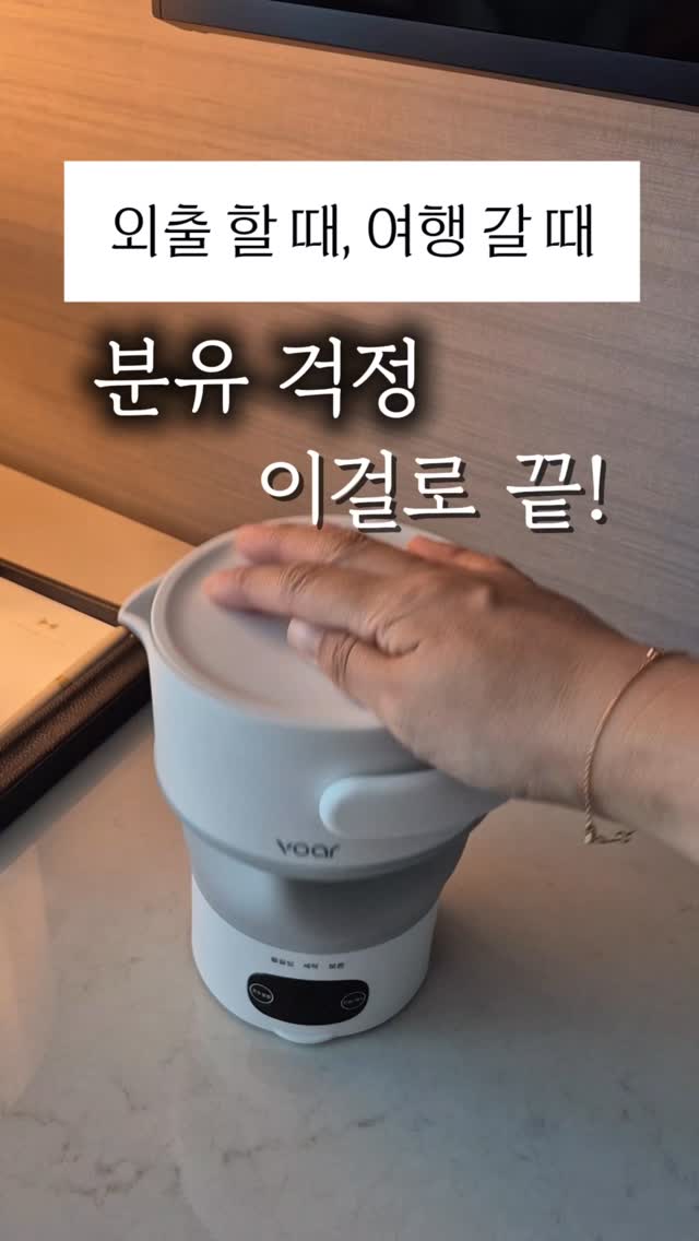 휴대용 분유포트로, 접이식 디자인과 안정적인 소재로 여행과 외출 시 유용합니다. 1도 단위 온도 조절이 가능하며, 안전 인증을 받은 제품입니다.