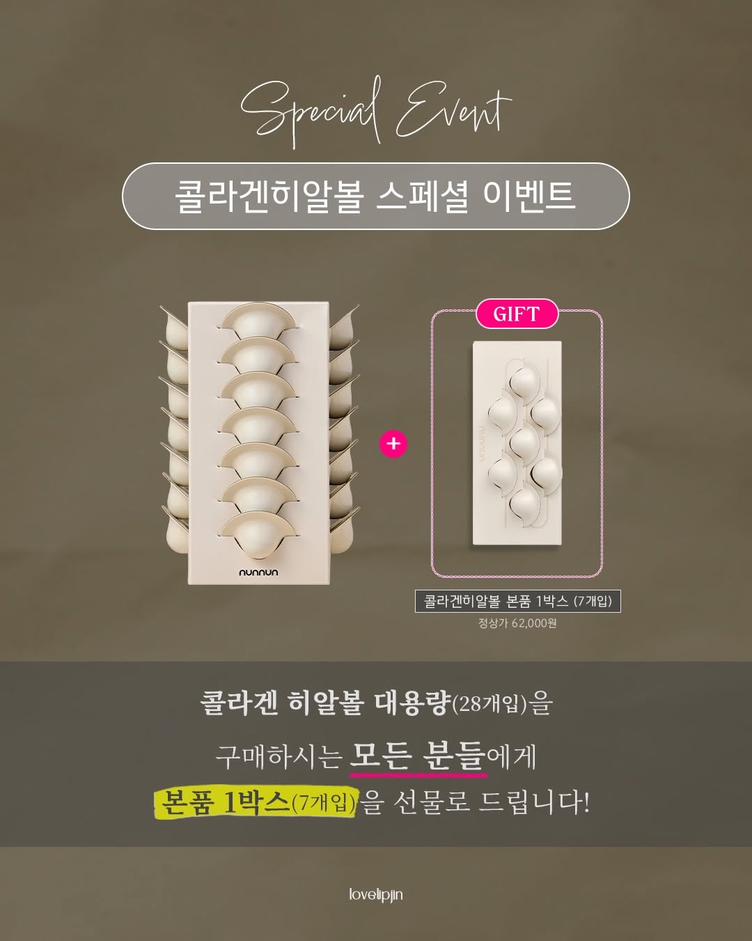 🔔D-1 내일은 콜라겐히알볼! 이벤트 잊지마시라고 공지 다시 하고 갈게요! 이번에 신년이벤트잖아요..🎁 콜라겐볼 옵션은 3가지 거든요! *1박스(7개입) *2박스(14개입) 5천원 추가할인 *대용랑(28개입/4박스 기준) 37,000원 추가할인 이렇게 3만7천원 추가할인이 들어가는데… 🎁 대용량 구매 시 모두 다! 1박스 더 증정! 개인적으로 저는 무조건! 무조건! 대용량이 할인 혜택도 너무 심각하게 좋아서….. 무조건 1-2박스는 추천할게요! (대용량 구매가 정말 이득입니다….) 가격과 이벤트를 정리해보면! 가장 중요한 가격 초초초 파파파격 할인가! ✔️6만원대 1박스(7개입) -> 공구가 3만원대까지 ✔️24만원대 대용량(28개입) -> 공구가 11만원대에 +모두 다 1박스 더 선물! 콜라겐히알볼은 내일만나요!!!! 사용법, 제품 설명은 내일 싹 정리할게요! #콜라겐#히알루론산 #홈케어#이벤트