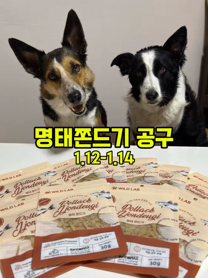 🐟 와일드랩 명태 쫀드기 1+1 공구 육류 알러지 걱정, 편식, 제조 위생까지… 간식 고르기 힘들었던 분들 와일드랩 명태 쫀드기로 결정하시면 됩니다. ✔️ 최상급 원물 명태 사용 ✔️ 저지방 · 고단백 ✔️ 저온 건조로 쫀득한 식감 그대로 ✔️ 인공첨가물 ZERO ✔️ 강아지 · 고양이 모두 급여 가능 ✔️ 국내 생산, 믿고 먹이는 간식 입맛 까다로운 아이들도 한 번 먹기 시작하면 멈추기 힘든 그 식감이에요. 노즈워크용으로도 좋고, 다이어트 간식, 치아 약한 노령견 간식으로도 딱이에요. 💡 이런 분들께 추천해요 육류 알러지 있어서 생선 간식 찾는 분 편식 심한 아이 간식 고민 중이신 분 살 안 찌는 간식 찾는 분 믿을 수 있는 국내산 간식 원하시는 분 📅 공구 일정 1.12(월) – 1.14(수) 📌 구성 & 가격 1+1 구성 👉 한 팩 구매 시 한 팩 더! ✔️ 공구가 3,600원 🚚 배송 안내 ✔️ 5만원 이상 무료배송 진짜 부담 없이 쟁여두기 좋은 간식이에요. 노즈워크용, 외출용, 집에서 간식용으로 두루두루 쓰기 좋아요 공구주문은 프로필링크 타고 와주세요!