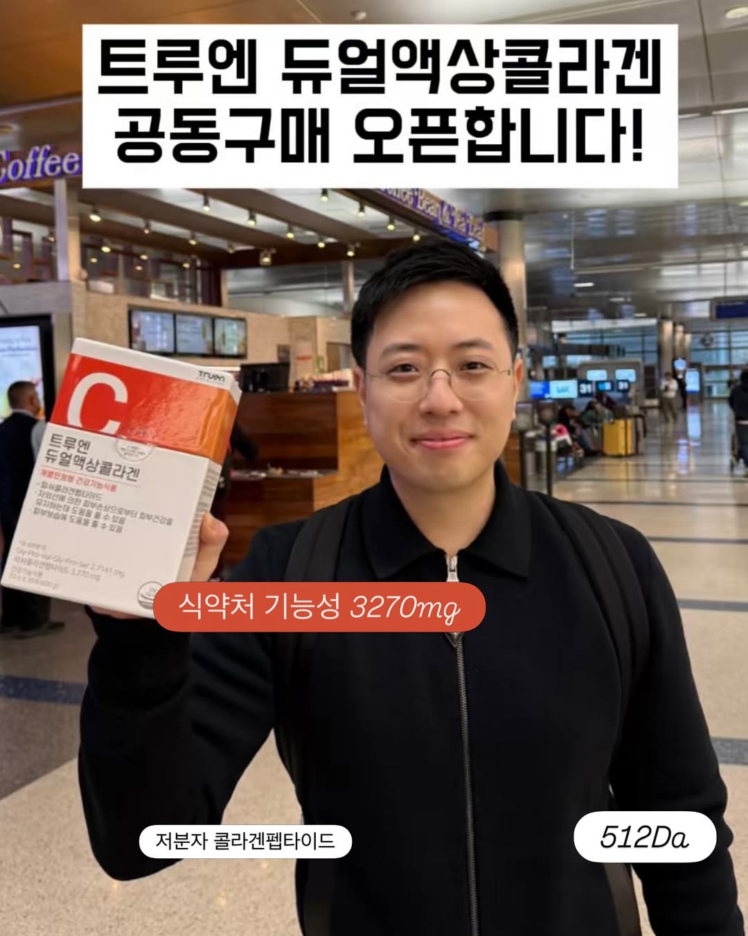 ❗️공구 품목 : 트루엔 듀얼액상콜라겐 제가 공동구매 하면서 리뷰가 1000개가 넘은 콜라겐입니다😊 그만큼 많이 신뢰하는 브랜드인 트루엔의 액상콜라겐 오픈합니다. 피부건강에 제가 가진 집중력을 다 쏟아부었습니다. 여러 피드, 릴스에서 콜라겐의 섭취와 비타민C의 보충을 강조했던것 저의 스토리, 릴스, 피드를 오래 보신 팔로워 분들은 다 아실거에요! 그 중 가장 주력으로 소개했던 제품을 공구진행합니다😊 💛저는 콜라겐을 아래 기준으로 선택 합니다. 1️⃣ 건강기능식품 피부 기능성 있는 제품 2️⃣ 피쉬콜라겐 3,000mg 이상 함유 3️⃣ 700달톤 이하의 저분자콜라겐 4️⃣ 콜라겐의 비린 맛을 잘 잡았는지 당연히 소개하는 제품은 위 기준을 초과하여 충족하는 제품이죠! 이 제품은 미팅을 정말 여러 번 진행해서 신중하게 논의 한 품목입니다. 📢 트루엔 듀얼 액상콜라겐 제품특장점📢 ✅ 식약처에 건강기능식품 기능성을 받았는지? ➡️.피부보습에 도움을 줄 수 있음, 자외선에 의한 피부손상으로부터 피부 건강을 유지하는데 도움을 줄 수 있음 이라는 2중 기능성 있습니다. ✅ 함량은 충분 한가요? ➡️ 3,270mg으로 아주 고함량 피쉬 콜라겐 입니다. ✅ 분자량은 어느정도인지… 흡수 잘 되나요? ➡️ 512Da 크기로 충분히 저분자 콜라겐입니다. 🎈가격 안내🎈 2박스 (1박스 30포, 총 2개월분) 99,800원 ➡️ 65,000원 (35%할인가) 5박스 (1박스 30포, 총 5개월분) 249,500원 ➡️ 154,000원 (38%할인가)
