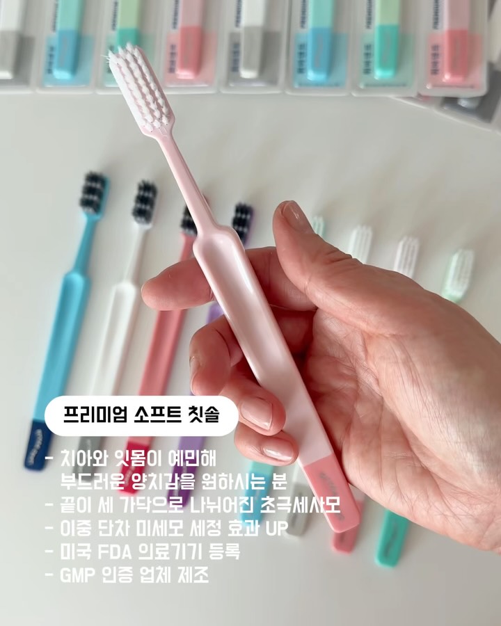 저는 치아 교정을 했었는데 나이 드니 잇몸이 더 약해져서 그런지 양치할 때 분노의 칫솔질을 하다보니 하루가 멀다하고 피 섞인 거품을 뱉는데🩸 켄트 칫솔이 부드럽긴 한데 1개에 3200원은 너무 비싸 부담스럽고 가격 대비 가성비 좋은거 선호하는데 내가 안 쓰니 켄트 공구 제안도 모두 거절하고 그동안 딱히 가격대비 만족스러운 칫솔을 못 찾아 왕타 칫솔만 썼었는데 이젠 왕타에서 휘바덴트로 정착!😌 휘바덴트 칫솔 쓰면서 평상시처럼 분노의 칫솔해도 잇몸이 약한데도 피 섞인 거품 뱉은 적이 없을만큼 너무 부드러운데 부드러워서 잘 안 닦이는거 아닌가 의심은 NO!🙅🏻♀️ 소프트와 미디엄모 둘 다 초미세모인데 🪥 소프트는 초미세모 끝을 3가닥으로 등분해 섬세한 세정력 🪥 미디엄모는 칫솔모를 꼬아놓은 형태로 부드러우면서 강한 세정력 양치 후 혀로 윗니 쓸어보면 치아 스케일링 받고 났을때처럼 치아 사이사이의 치석 제거가 개운하게된 느낌! 잇몸 약하시거나 개운한 세정력의 가성비 좋은 칫솔 찾으신다면 휘바덴트 써 보세요~🙌 . . . #바이미룸#bymiroom#바이미룸공구#살림팁