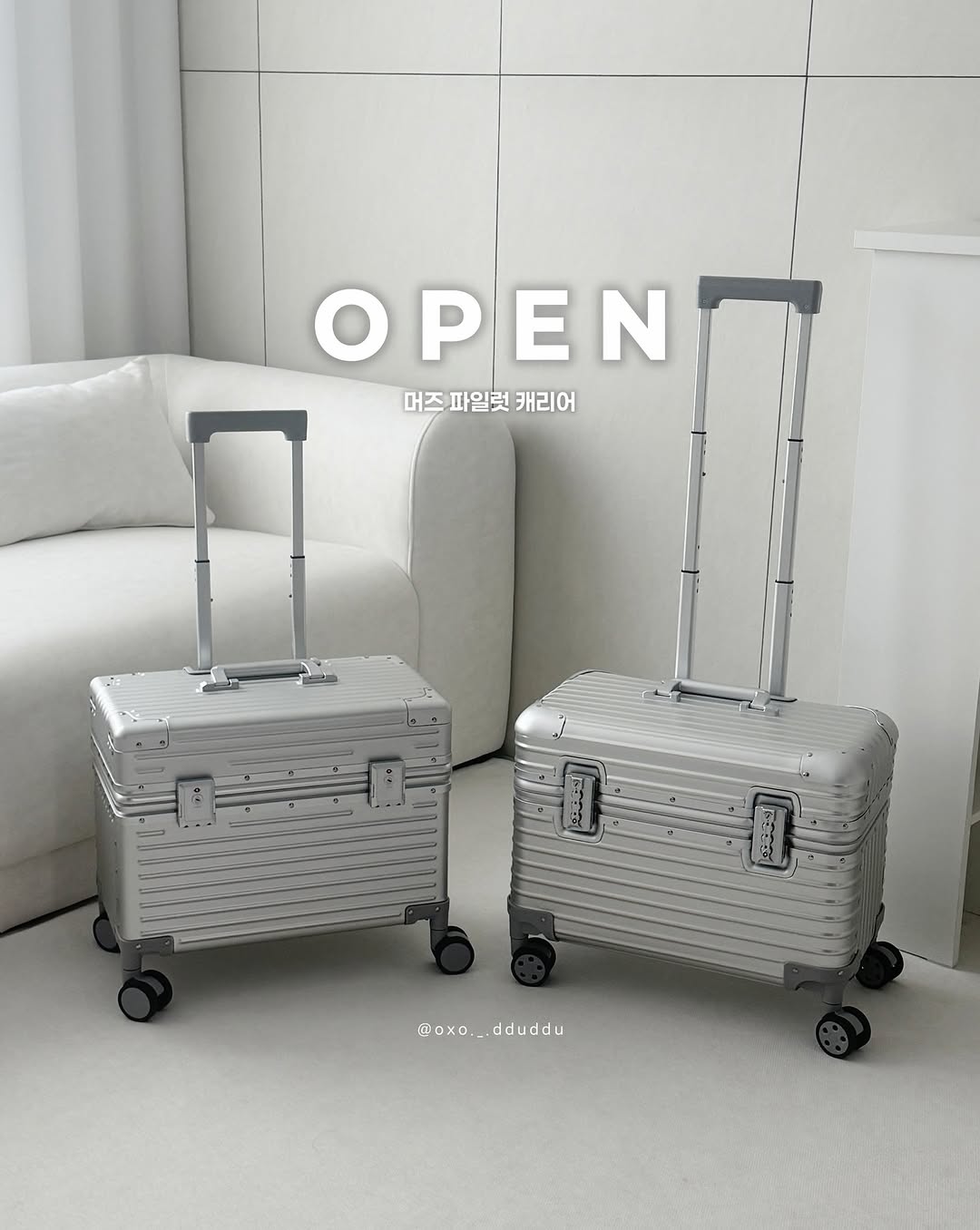 🩵 머즈캐리어 💌 댓글로 [ 링크 ] 남겨주시면 최저가 링크 디엠 보내드릴께요 🐤 라운드 공구가 : 129,000원 🐤 직각 공구가 : 139,000원 🐤 화이트/핑크 PU 공구가 : 115,000원 위로 열리는 캐리어 다들 갖고 싶으셨죠 ? 저도 너무너무 갖고싶긴했는데 원조 브랜드는 200만원이 넘는 가격이 쳐다도 안봤구요 🥲 다른 가성비 브랜드도 20만원 후반대라서 고민했는데 요거는 보자마자 이거다!!!! 싶었어요💛 사심가득담아서 준비한 공구에요 🙈 1박이든 2박이든 내 짐은 많이없는데 아이짐은 너무 많고 급하게 아이짐 꺼낼 일도 많잖아요? 눕혀서 지퍼 열고 다 뒤적거리는 거 이제 그만❌ 위로 톡! 열어서 꺼내면 끝이라 여행길이 훨씬 여유로워져요 시댁·친정 갈 때도 짐 한가득 챙기기 바쁜데 깊게 수납돼서 깔끔하게 들어가고 꺼내기도 편하니 이동할 때 진짜 유용해요!! ✔️ 100% 풀 알루미늄 바디 → 튼튼+고급스러움 ✔️ 위로 여는 구조 → 눕힐 필요 없음 ✔️ TSA 정품 락 / 117시간 품질테스트 통과 ✔️ 내부 충격방지 포켓 4개 → 노트북, 여권 등 안전하게 ✔️ 바퀴 탈부착 가능 → 세척·보관 위생 걱정 끝 ✔️ 기내용 사이즈 / 3.6kg 가벼운 무게 → 단기여행·캠핑·출장 다 커버 ✔️ 3년 AS 보장(1년 무상) / 국내 무료배송 💬 찐후기 왜인지 모르겠지만 일반 캐리어는 평소에 간단하게 1박2일갈때는 들고가기 부담스럽더라구요 ! 근데 요거는 진짜 같은 20인치인데 사이즈도 더 컴팩트해보이고 사용하기도 편해서 진짜 진짜 좋았어요 사이즈는 컴팩트한데 수납은 많이 되고 위로 열리니까 길바닥에 앉아서 캐리어 여는일 없고 낮으니까 아이도 위에 앉아있어도 문제없구요 1년에 몇번 안쓰는 큰캐리어도 필요하긴하지만 더 손이 많이가는건 이거같아요 🩷 무엇보다 바퀴 분리 !!! 이거 진짜 완전 좋아요 :) 여행다녀오면 눕혀서 바퀴 닦는것도 일인데 쏙 빼서 세척할수있고 바퀴닳아도 캐리어 전체가 아닌 바퀴만 교체하면되니까 훨씬 오래쓸수있어요!! 🎁 레인커버 100% 증정 ✈️ 휴가,아이들과의 여행, 시댁·친정 방문까지 짐도 많이 들어가고, 급할 땐 위로 톡 열어서 꺼내 쓰는 캐리어예요💛 📍 공구기간 : 4월 15일부터 4월 19일까지 🎀 지금바로 프로필 링크에서 구매 가능합니다 !