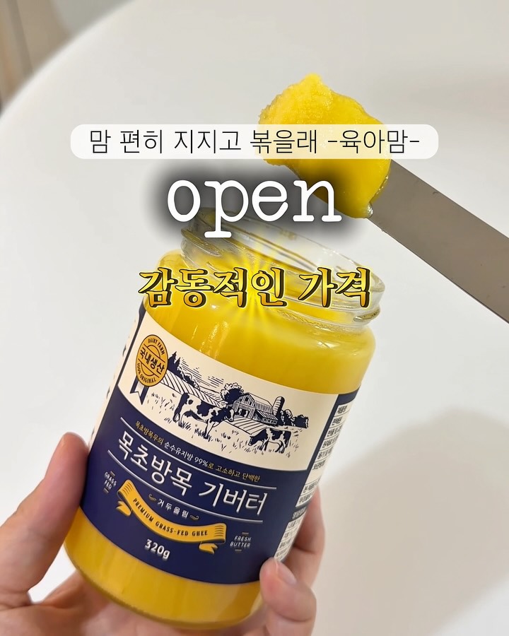 오늘 오전 10시 목초 기버터 <거두올림 기버터> 💬 댓글로 [핫딜] 남겨주세요 오픈과 동시에 특가 링크 보내드릴게요! ✅ 매주, 매달 가장 최근에 생산된 신선한 버터로 보내드려요 🧈 ✅ 준비된 물량이 소진되면 조기 마감됩니다 ‼️고온에 쉽게 타버리는 식용유는 그만❌ ‼️산화되며 나오는 유해물질은 NO NO ‼️드디어 ‘국내’ 제조 기버터가 왔다 ⋯⋯⋯⋯⋯⋯⋯⋯⋯⋯⋯⋯ 🎁 구매완료 이벤트 “구매완료+연락처 맨 뒤 4자리“ 남겨주세요 5,000원 현금 페이백 해드릴게요 (5명) 최종 체감가가 얼마야 ...!! 😚 ⋯⋯⋯⋯⋯⋯⋯⋯⋯⋯⋯⋯ 유아식 시작하고 매일 지지고.. 볶고.. 지지고 볶고.. 맞죠 ? 😎 근데 어떤 기름을 쓰는게 좋을지 고민이고 .. 저도 기름 선택에 대한 고민 정말 많았는데 최종적으로 기버터 선택한 이유는요! 👉🏻고온에도 강한데 풍미까지 끝내주니까요! 고기나 생선 구울 때 꼭 써보시고 특히 지용성 채소, 당근이나 토마토 애호박 자주 먹이실텐데 기버터와의 궁합 정말 좋으니 꼭꼭 츄라이 !!!!!!!!!! ⋯⋯⋯⋯⋯⋯⋯⋯⋯⋯⋯⋯ ✅ 기버터란? 일반 버터에서 수분, 유당, 유청을 제거한 정제 버터로 발연점이 250도로 고온 조리 ( 볶음, 튀김 등)에 적합한 순수 정제버터 👉🏻 고로 !! 유아식 만들 때 볶음 요리, 튀김 요리 등 높은 열에 조리할 땐 고온에도 강해 지방 구조 안깨지고 요리의 맛은 더 높여주는 풍미까지. ❗️퓨어한 기버터는 장 점막을 회복시키고 염증을 낮춰주는 역할도 해요❗️ ⋯⋯⋯⋯⋯⋯⋯⋯⋯⋯⋯⋯ 저는 유아식 시작하자마자 고온에도 힘 있는 기버터로 싹 바꿨거든요 우선 풍미 자체가 달라서 계란만 볶아도 맛있는데 와 ...이번에 같은 스펙 제품 대비 ❗️무려 40%나 저렴한❗️ 정말 매력적인 금액이라 안 써볼수가 없었는데 먹어보고 바로 정착했습니다 😎이거 포인트가 수입으로 떼오는 완제품과 달리 뉴질랜드산 원유를 가져와서 한국에서 오랜 시간 정제해서 굉장히 신선하게 받아 드셔보실 수 있어요 👍🏼 ⋯⋯⋯⋯⋯⋯⋯⋯⋯⋯⋯⋯ 🧈 거두올림 기버터 스펙 ! ✅ 자연방목 무항생제 원유로 한국에서 제조 👉🏻 수입산은 하절기 평균 65도가 넘는 기온에 녹았다 굳었다를 반복하면서 들어옴 ✅ 청정 뉴질랜드 공동인증 안심 원유 사용 ✅ 유당불내증이 있어도 상대적으로 편한 섭취 ✅ 상온 보관 가능 (한여름은 냉장) ✅ 오메가 3, 오메가 9 풍부 ✅ 지용성 비타민 A, E, K 풍부 📅 일정 1/29(목)~ 2/1(일) 📍거두올림 기버터 구성 320g 1병 13,900원 추천⭐️) 320g 2병 27,500원 320g 4병 53,900원 유통기한 : 제조일로부터 2년 🚛 배송비 3,000원 낮 12시 이전 주문 시 당일 배송이나 주문 폭주 시 1~2일 지연될 수 있습니다!