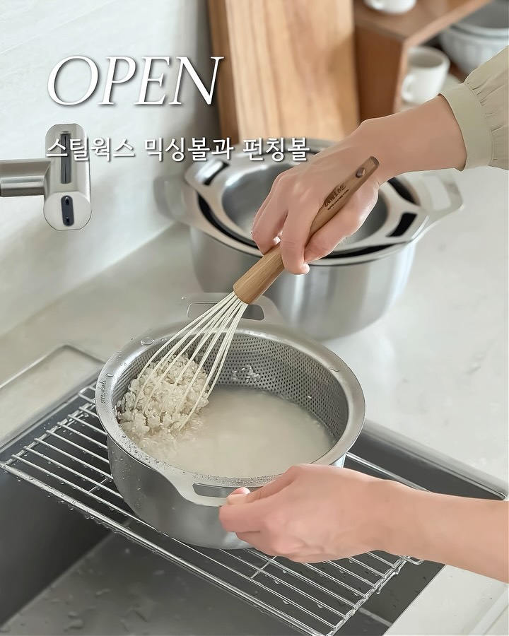 🧡스틸윅스 믹싱볼과 펀칭볼 공구예고 믹싱볼이랑 채반 따로 쓰다 보면 자리만 차지하고 정리도 불편하죠🙂 크기도 안 맞아서 대충 쌓아두게 되는 경우 많고요 정리까지 깔끔하게 되는 제품 준비했어요 📌스틸윅스 믹싱볼과 펀칭볼 믹싱볼 + 펀칭볼 세트 구성이라 쌀 씻기, 과일 세척은 물론이고 펀칭볼로 데치고 삶고 중탕까지 하나로 다양하게 활용 가능해요 포스코 304 스테인리스 소재라 내구성도 좋고 오래 쓰기에도 괜찮고요 양손 핸들이 있어서 무거운 식재료도 안정감 있게 들 수 있어요 18 / 21 / 24cm 사이즈 구성이라 상황에 맞게 골라 쓰기 좋고 사용 후에는 착착 포개져서 보관도 깔끔하게 정리할 수 있어요 주방에서 자주 쓰는 아이템이라 이런 구성 하나 있으면 정말 편해요 한정수량 특가로 준비해왔어요 💛 📌공구일정 📢 4월9일-4월14일(총 6일간) 📍빠른구매 원하시면 아래 흔적 부탁드려요 :)