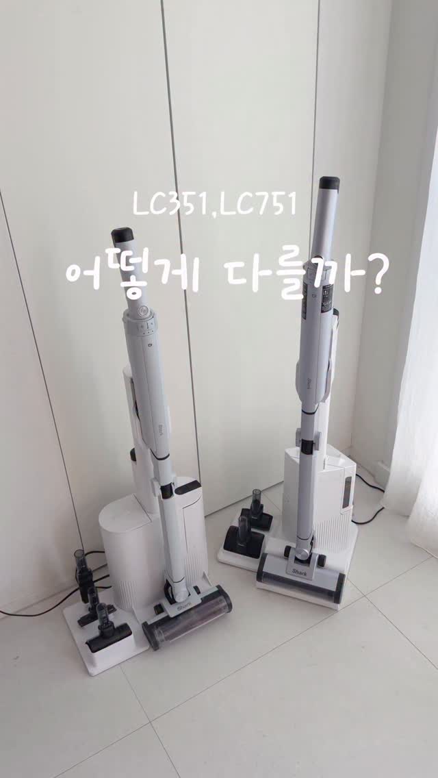 #샤크청소기 LC351,LC751 어떤 차이가 있나요? 많이 물어보셔서 영상 준비했습니다‼️ LC351은 현재 공구 진행중으로 구매자 전원에게 닌자초퍼를 증정하는 마지막 핫딜이에요! 3/23까지 진행합니다. LC751은 4/1 공구 오픈 예정이고 똑같이 닌자초퍼 증정해요. 영상보시고 두가지 중 골라주셔요☺️ 두 모델 다 이름이 비슷한 만큼 외형도 사이즈도 흡입력도 같아요 351의 업그레이드 버전이 751이라 351의 기능을 751은 다 가지고 있고 여기에 몇가지 기능이 더해져 있는데 가장 큰 차이는 바로 360도 인텔리전트 노즐 751의 핵심 기능입니다 앞으로 밀때 뿐만 아니라 당길때도 흡입해요 또 블루LED라이트가 있어 숨어있는 먼지로 쉽게 볼수 있다는점, 351이 가진 IQ센서,플로어센서에 엣지센서가 더해져 가장자리와 코너를 인식해 먼지를 당겨와 흡입합니다. 가운데가 접히는 플렉스 기능,먼지를 자동으로 비워주는 오토엠티기능 동일하게 들어가 있고 배터리 2개씩 들어가있는것도 같아요 351은 샤크청소기의 베스트오브베스트이고 751은 이제 막 출시된 다기능최신모델이자 신흥강자이기 때문에 적절한 기능이어도 좋으시면 351을 비싸도 난 무조건 최신형이 좋아 하면 751 선택하시면 됩니다! 351은 23일까지 진행하고 751 구매 원하시면 4/1에 만나요💕 #밀커블 #무선청소기 #샤크청소기공구