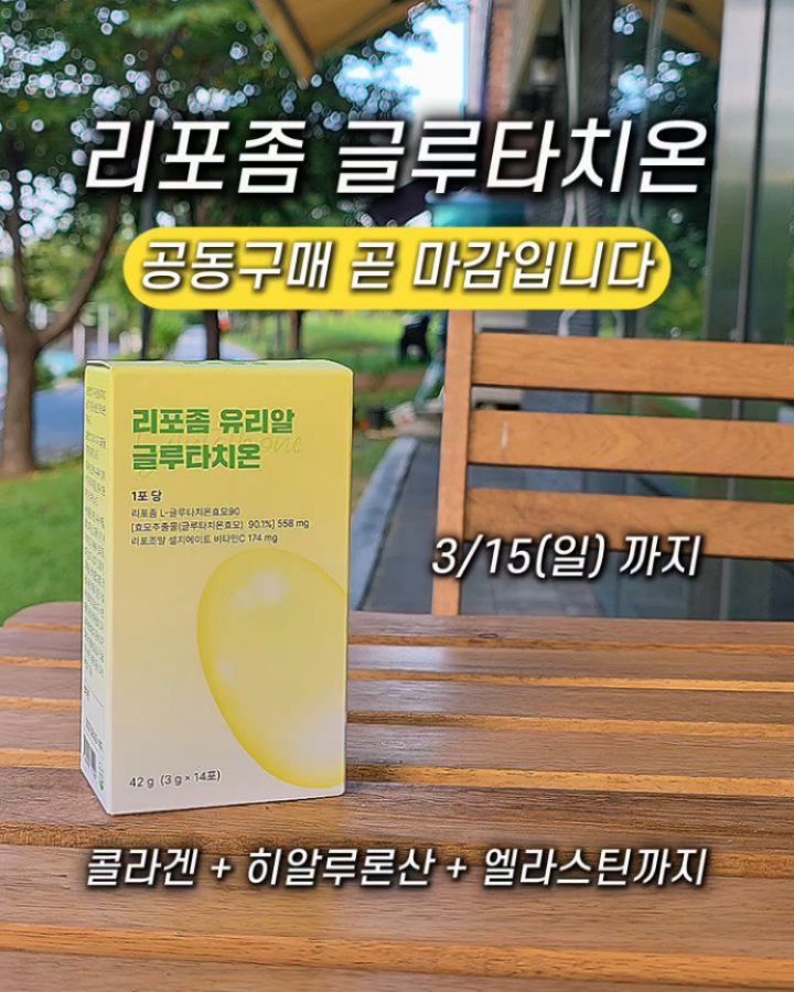 🔻글루타치온 공동구매 곧 마감합니다🔻 ➡️ 3/15 일요일 밤 12시 때아닌 황당한 MSG 논란 덕분에(?) 이슈의 중심이 된 "글루타치온" 글루타치온이란 원료는 경구섭취 의약품으로 쓰일 정도로 대규모 임상실험 결과를 가진 원료인데요 (원료에 대한 설명) 이게 5% 이하로 흡수율이 낮다보니 리포좀 형태로 흡수율을 높인 제제가 주로 사용되고 있습니다 사실 효과는 술자리에서 한포만 드셔보셔도 바로 눈으로 보이죠 😅 다음진행은 3달 뒤를 예상합니다. 필요하신분들의 건강에 도움이 되셨으면 좋겠습니다🫡 📍이런 분들께 특히 추천드립니다 ▪️밝고 환한 하루를 원하시는 분들 ▪️간편하게 올인원 이너뷰티를 챙기실 분들 ▪️세포 깊은곳부터 깨끗하게 하실 분들 ▪️자외선이 걱정되시는 분들 ▪️바르는 스킨케어로 부족함을 느끼시는 분들 ▪️매일 지치고 힘드신 분들 ▪️간이 지치고 피곤할까 걱정되시는 분들 📍압도적 스팩 소개해드립니다 ▪️무려 순도 90%의 최고순도 ▪️순수 글루타치온 1포당 500mg ▪️콜라겐, 히알루론산, 엘라스틴, 비타민C 고함량에 ▪️밀크시슬, 시스테인까지 고함량 함유 ➡️ 올인원 제품으로 손색이 없습니다 #유리알글루타치온 #글루타치온공동구매 #글루타치온 #리포좀글루타치온 #글루타치온추천