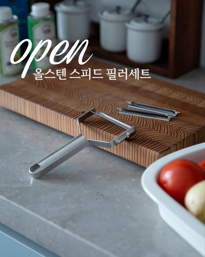 [💙올스텐 스피드 필러세트] 요리할 때 채칼 하나만 잘 써도 준비 과정이 훨씬 수월해지더라고요 💙 일본에서 1초에 8개씩 판매되는 제품이라 이미 많은 분들이 사용하고 있는 아이템이에요💙 힘 주지 않아도 부드럽게 썰리는 절삭력이라 손에 부담 없이 편하게 사용 가능해요 핸들, 슬라이스, 굵은 채, 얇은 채까지 필요한 구성 모두 담겨 있어서 한 번에 사용할 수 있어요 올스텐 소재라 위생적으로 오래 쓰기 좋고, Made in Japan 제품답게 마감이나 디테일도 깔끔한 편이에요👍 부채꼴 각도로 설계된 날이라 손목 부담도 덜어줘서 요리할 때 훨씬 편안하게 느껴지실 거예요🤍 요리는 조금 더 간편하게, 주방은 더 단정하게 만들어주는 도구 지니하우스에서 최저가로 소개해 준비중이에요🖤 📌빠른 구매 원하시면 흔적 남겨주세요 좋아요로 알림 드릴게요➰ 💟공구일시 : 4/12 - 재고 소진시 마감(한정재고)
