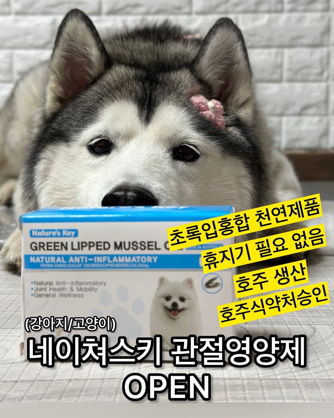 (구매완료는 여기에 써주세요) 🔥구매원하시면 댓글에 “링크“라고 써주세요!! (팔로우하셔야 디엠보임) 또는 프로필에도 링크 걸려있어요!! 초록입홍합성분이 관절통증에 관절보호에 좋다는건 이미 다 아실듯 초록입홍합성분이 적으면서 비싼 타사제품 ㅇㅇㅇ먹이다가 갈아탄지 저는 벌써 5년정도된거같네여 부끄 십자인대 수술이후 부랴부랴 먹이기 시작한 관절영양제 ✔️아플때 급여량의 두배용법을 꼭 기억하세요 가벼운 관절통증은 바로 좋아집니다 ✔️평소에도 꾸준히 미리 먹여줘야 관절연골 보호를 하고있어거 다치더라도 크게 다치지않아요 ✔️생후 3개월부터 급여가능하며 증상이 있다면 어릴때부터 급여해주세요 📌수의사들이 꼭 급여하라고 하는 기본 보조제는 유산균+관절영양제+오메가3입니다 ◾️공구기간 : 4/19마감 (이후공구 10월예상) ◾️배송 : 호주직구제품이었는데 이번에는 한국으로 미리 통관 해두어서 네이버에서 당일 출고 (통관번호필요없음 구매량제한 없음) ◾️이벤트 오후1시부터 카운트 선착순 20분께 rTG오메가3 15정 추가증정 구매완료 작성시(스토리에 구매인증) 추첨후 00명 올영상품권 추가증정 오메가조인트 올해 10월이후 구매가능 현재 품절 ✔️오메가조인트 : 초록입홍합 +오메가3 비율대로 구성해둠 📌초록입홍합 관절영양제는 오메가3와 함께 먹여야 항염 극대화 관절염 관절통증이 있다면 꼭 같이 급여부탁!! 초록입홍합/오메가3 따로따로 구매가능!! 저는 부끄의 십자인대수술 이전부터 관절영양제를 챙겨주지않은걸 지금도 후회하고있어요 저처럼 실수하지마세요 관절영양제는 필수입니다!!! ✔️또한 평생 먹여야하기때문에 휴지기가 없는 천연제품을 추천드립니다 간이나 신장에 영향이 없는 천연제품입니다 🦪 네이쳐스키 초록입홍합 ▪️성분 : 뉴질랜드 초록입홍합50mg +ETA 포함 오메가3 23mg ▪️캡슐 : 어피(생선) 캡슐(8~10mm) ▪️효능 : ㅇ관절: 염증 억제, (만성)통증 완화 ㅇ연골: 보호, 탄력 유지, 윤활개선 ㅇ염증·근육: 염증 감소, 근육 강화 ▪️급여방법 : 첫급여나 절뚝일때 2주동안 2배로 급여, 이후 정량 ▪️천연제품(솔비톨,아황산염없음), 휴지기,내성 없음 ▪️호주 생산, 호주식약처 승인, 제약회사에서 제조 🐟 네이쳐스키 rTG 오메가3 ▪️성분 : 독일 KD파마 소형어종 ▪️특징 : ㅇ저온 초저임계 rTG형 (흡수율 ↑) ㅇ98% 고순도 (중금속/산패 낮음) ㅇEPA + DHA 함량(실측 379mg 초고함량) ▪️캡슐 : 어피(생선) 캡슐 (약1.3cm) ▪️효능 ㅇ관절: 염증 완화, 통증 완화 ㅇ피부·피모: 건조·가려움 완화, 윤기 개선, 피부장벽 강화 ㅇ심혈관: 혈행·혈액순환 개선, 심장 건강 도움 ㅇ뇌·시력: DHA 기반 인지 기능·시력 유지 ㅇ면역·염증: 면역력 강화, 염증 조절 ▪️급여방법 : 사료에 넣어주거나 터트려서 오일만 급여가능 🔥 같이 먹였을 때 효능 ▪️이중 항염 ㅇ초록입홍합 → 관절/연골 + 국소 염증 ㅇ오메가3 → 전신 염증 + 혈류 + 신경 ▪️실제 체감 ㅇ통증 스파이크 완화 ㅇ보행 흔들림 감소 ㅇ디스크 + 관절 복합 케이스에 도움 🔺원래 호주직구상품으로 구매량제한, 긴배송기간이 단점이었으나 이번 공구는 한국으로 최근출고, 공구상품은 전량 한국에서 익일출고 가능 구매량/통관번호 필요 없음 🔺이벤트 : 선착순 20분께 rTG오메가3 15정 추가증정 (링크 열려있음! 선착순해당은 4/1 오후1시부터 카운트됨) 허스키 고양이 말라뮤트 슈나우저 비글 요크셔테리어 푸들 비숑 꼬똥드툴레아 치와와 웰시코기 사모예드 리트리버 진돗개 포메라니안 보더콜리 잉글리쉬쉽독 스피츠 도베르만 닥스훈트 시바이누 시고르자브종 페키니즈 말티즈