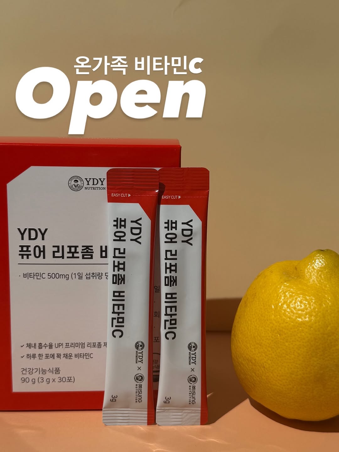 공구오픈 잠시후 온가족 비타민C [퓨어 리포좀 비타민C] OPEN! 🎁구매이벤트 구매하신 분들 10분 추첨해 1박스 추가 증정합니다 (곧 이벤트 피드 따로 올릴게요! 요기 남겨주셔도 되구요. 아무후기 댓글 남겨주세요오) ✔️저희 아이들은 비타민C의 신맛에 비타민C만 보면 도망가기 일쑤 😨 아직 알약은 못먹고, 가루는 시다못해 쓰다고 표현하더라구요 ✔️또 저는 비타민C 메가도스 할때 위장에 자극에 되어 불편함이 있었어요 그러다 정착한 [❤️퓨어리포좀비타민C] #리포좀 제형기술로 흡수율을 높이고 ⬆️ 그동안 불편하게 느꼈던 단점은 최소화 ⬇️ 그래서 메가도스 하기도 상당히 수월하고요 무엇보다 저희 아이들이 유일하게!!👍 잘 먹어주는 맛있는 비타민C라 꾸준히 섭취하고 있죠 ❤️ 제품특징 설명드리면, ✔️리포좀 전문기업 미국의 cellg8 원료구요 체내 흡수율이 월등하고, 더 오래 지속됩니다 공복에 먹어도 속쓰림이 없어요 ✔️1포에 비타민C가 500mg 들어있어서 건강유지로 성인 하루1포면 충분해요 ✔️분말형 스틱포장이라 휴대도 좋고 물없이 어디서나 간편하게 드실 수 있어요 ✔️무엇보다 맛이 진짜 좋아요 너무 시지도, 너무 달지도 않은 레몬맛이에요 ❤️구성안내 2박스 (60포) 58,000원 ➡️ 43,500원 (25%off) 4박스 (120포) 116,000원 ➡️ 83,500원 (28%off) 8박스 (240포) 232,000원 ➡️ 148,400원 (36%off) 12박스 (360포) 208,800원 ➡️ 208,800원 (40%off, 박스당 17,400원) ❤️섭취 방법 식사 관계없이 드세요 드물게 위장장애시 식후드세요 ▪️만1-2세: 하루 1회 1/3포 ▪️만3-5세: 하루 1회 1/2포 ▪️만6세이상: 하루 1회 1포 적극적 섭취시 증량도 가능해요! 증량할 땐 1회분량을 하루 3,4회 나누어서 주세요 설사 있다면 줄여주세요 📌이런분께 추천드려요 ✔️음주, 흡연, 커피 하시는 분 ✔️과도한 업무, 학업, 가사로 활력이 없고 지치신 분 ✔️과일, 채소 등 비타민C 섭취가 부족하신 분 ✔️운동량이 많아 항산화관리가 필요하신 분 ✔️비타민C 메가도스 하며 하루1,2포만 먹어도 되는 높은 흡수력의 비타민C를 찾으시는 분