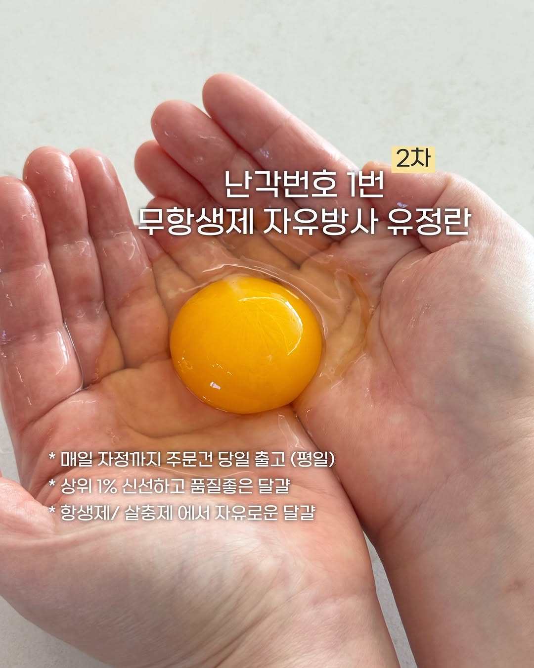 [OPEN] 난각1번 무항생제 유정란 2차 💟 구매이벤트 💟 최상위 1% 자유방사 무항생제 유정란을 구매하시고 구매완료 댓글을 달아주시는 분들 중 추첨을 통해 , 20구 1판을 선물로 보내드립니다 * 구매완료 + 최*희 / 8810 (전화번호 뒷자리) 한달에 한번 첫째주 오픈으로 두번째 일정으로 만나뵙네요 🙇🏻♀️ 우리 친구님들의 신선한 달걀은 , 앞으로 명희홈쿡이 책임질게요 💕 마트에서 판매하는 난각번호 1번란은 산란한지 오래되고 가격보시면 정말 비싸요 :) 하지만 이제 걱정 하지 마세요 품질 좋은 상위 1%의 난각번호 1번란을 농장 직송으로 중간 유통을 줄이고 당일산란 당일 발송으로 보내드리니까요 ☺️ 신선하기까지 한데 집에서 편하게 받아보실 수 있으니 무조건의 선택이겠지요! ❌항생제 ❌살충제 ❌약품처리 건강하지 않은 닭들은 무조건 약을 먹일 수 밖에 없어요 하지만 자유롭게 자라는 난각번호 1번 사육방식은 약을 먹이지 않고 건강하게 키워내 우리 아이들과 우리가족이 먹는 달걀로 안심하고 선택 하시면 됩니다 🫶 흔히 마트에서 자주보이는 4번란은 케이지에 평생 갇혀 죽을때까지 산란만하는 닭으로 좁은케이지에 살다보니 위생이 열악해 살충제와 항생제를 사용 할 수 밖에 없어요 🥲 난각번호 1번 유정란은 농장에서 자유방사로 키워내며 스트레스 없이 살아가는 닭의 알로 항생제와 살충제 사용없이 키워낸답니다 난각번호 1번 자유방사 유정란 드셔보시면 비린맛 하나 없이 고소하고 풍미가 진함이 느껴지실 거예요 💁🏻♀️ 마트표와 무조건 가격비교 해보세요 ! 40구 이상 추천 드립니다 👧🏻👧🏻 🥚당일 산란한 난각번호 1번 자유방사 유정란 산지택배발송 🥚무항생제 인증 / 무살충제 🥚착색제❌ 산란촉진제❌성장호르몬 ❌ 🥚최첨단 계란선별 / 검사시스템 🥚에어백 포장으로 더 안전 배송 Q. 유통기한은 언제까지 인가요? A. 계란에 적혀있는 산란일부터 “ 30-40일 이내“ 섭취 권장 ( 평균 3일 이내 산란한 신선한 달걀만 보내드립니다) - 마트표 계란은 산란한지 일주일이예요 Q. 계란을 삶았을때 껍질이 잘 안까지는것 같아요 A. 바로 산란한 신선한 계란은 막의 속껍질과 겉껍질이 붙어있어 잘 까지지 않습니다 , 낳은지 오래된 달걀은 속껍질과 겉껍질이 잘 분리 됩니다 Q. 흰자옆에 붙어있는 하얀색 덩어리는 무엇인가요? A. 계란의 알끈으로 노른자와 흰자를 고정하는 역할을 합니다 📌 일정 : 4/1 - 4/7 ( 매달 첫주 7일간 진행 ) 📌 구성 : 20구/ 40구 📌 구매 : @myunghee_homecook 제프로필 하단 링크에서 구매 가능하세요 💟 구매이벤트 💟 최상위 1% 자유방사 유정란을 구매하시고 구매완료 댓글을 달아주시는 분들 중 추첨을 통해 , 20구 1판을 선물로 보내드립니다 * 구매완료 + 최*희 / 8810 (전화번호 뒷자리)