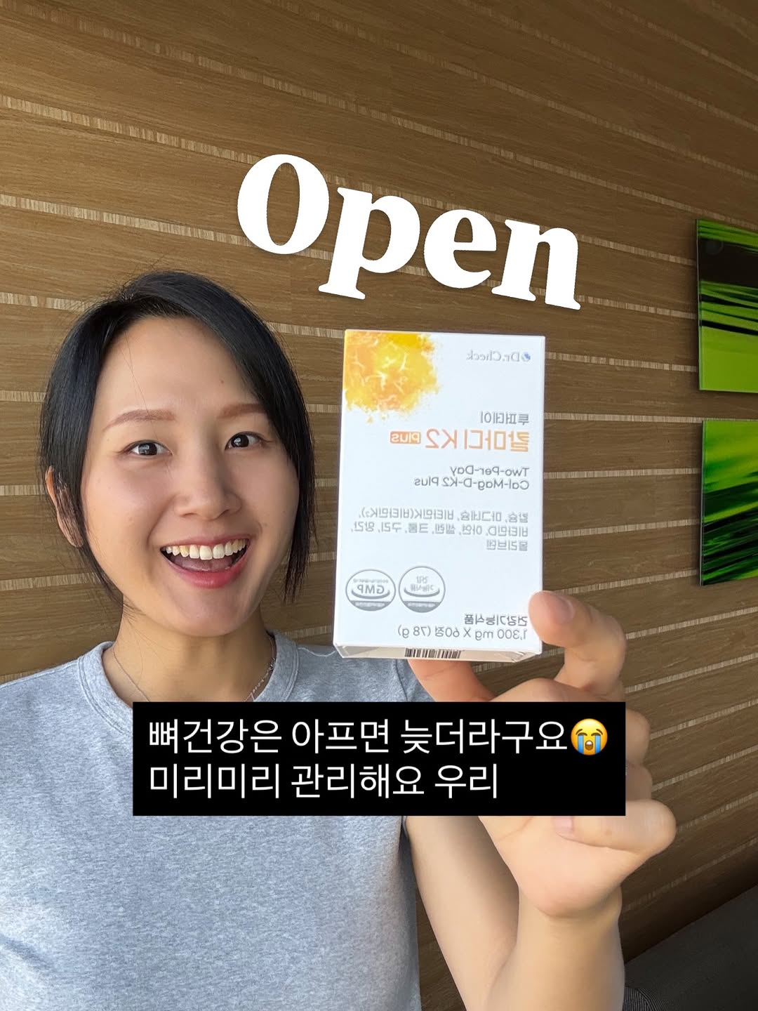 #공구오픈 #구매이벤트 잠시후 10시 잘짜여진 종합미네랄 투퍼데이 칼마디K2플러스🧡 🎁구매이벤트 구매 하신 분들 10분께 1박스(1개월분) 보내드려요 아무후기 남겨주세요:-) 단 2알로 칼슘, 마그네슘, 비타민D3, 비타민K2 (칼마디K2) +구리, 아연, 망간, 셀렌, 크롬까지 채울 수 있는! 원래도 잘 짜여진 포뮬레이션의 종합미네랄이었는데… 비타민K2 용량도 높이고 미량미네랄도 충분하게 채우고 몰리브덴까지도 추가로 넣었어요 💧미네랄 하면, 뭔가 막연하잖아요? 아주 쉽게는 우리의 뼈, 살, 피가 되는 물질이라고 생각하심 되어요 뿐만아니라 우리 몸에서 일어나는 각종 반응에 필수요소로 쓰이기도 해요 * 칼슘은 뼈와 치아를 이루고, 신경 근육 조절에도 필요하며, 정상적인 혈액응고에도 필요합니다. 특히 골다공증 위험을 감소시키는데 도움을 줍니다. * 마그네슘은 에너지 만드는데도 필요하고, 신경 근육 기능에 도움을 줍니다. * 비타민D는 칼슘이 흡수되는데 필요하며, 뼈 형성과 유지에 필요해 골다공증 위험 감소에 도움을 줍니다 칼슘 마그네슘 같은 다량미네랄 외에도 미량 미네랄도 아주 중요해요 * 아연은 정상적인 면역기능, 세포분열에 필요합니다 * 셀렌은 유해산소로부터 세포를 보호하는데 필요합니다 * 크롬은 체내 탄수화물, 지방, 단백질 대사에 관여합니다. * 구리는 철 운반과 이용에 필요하며, 유해산소로부터 세포를 보호합니다. * 망간은 뼈형성, 에너지 이용에 필요하며, 유해산소로부터 세포를 보호합니다. 대표적인 것만 간단히 쓴 것일 뿐 모든 미네랄들은 마치 톱니바퀴처럼 서로 얽히고 설켜 일하고 있어요 투퍼데이 칼마디K2 🔶제품 특징 간략히 설명드리자면요 ✔️10중 기능성으로 칼슘마그네슘 뿐 아니라 “총10종의 비타민미네랄”이 포함되어있고요 ✔️칼슘:마그네슘 비율=1:1로 매우 이상적입니다 ✔️정말 강조드리는 비타민K2 원료가 100ug 포함되었구요 (👉 비타민 K2의 역할은 유튜브에서 검색해보심 많이 나옵니다^^) ✔️QualiD 비타민D도 1,000IU 채웠습니다 (👉 D는 그래도 추가로 드시는것을 권장드려요) 🔶구성안내 1박스=60정 (1개월분) ◾️3박스 (3개월분) 81,000원 ➡️ 63,600원 (21%off) ◾️6박스 (6개월분) 162,000원 ➡️ 111,000원 (31%off) ◾️12박스 (12개월분) 324,000원 ➡️ 205,200원 (37%off, 1개월 17,100원) 🔶섭취방법 1일 2회 식후 1정씩 또는 1일 1회 식후2정 정말 가성비 넘치는 미네랄제품이기에, 가격좋을 때 온가족과 함께 챙기심 좋겠습니다!