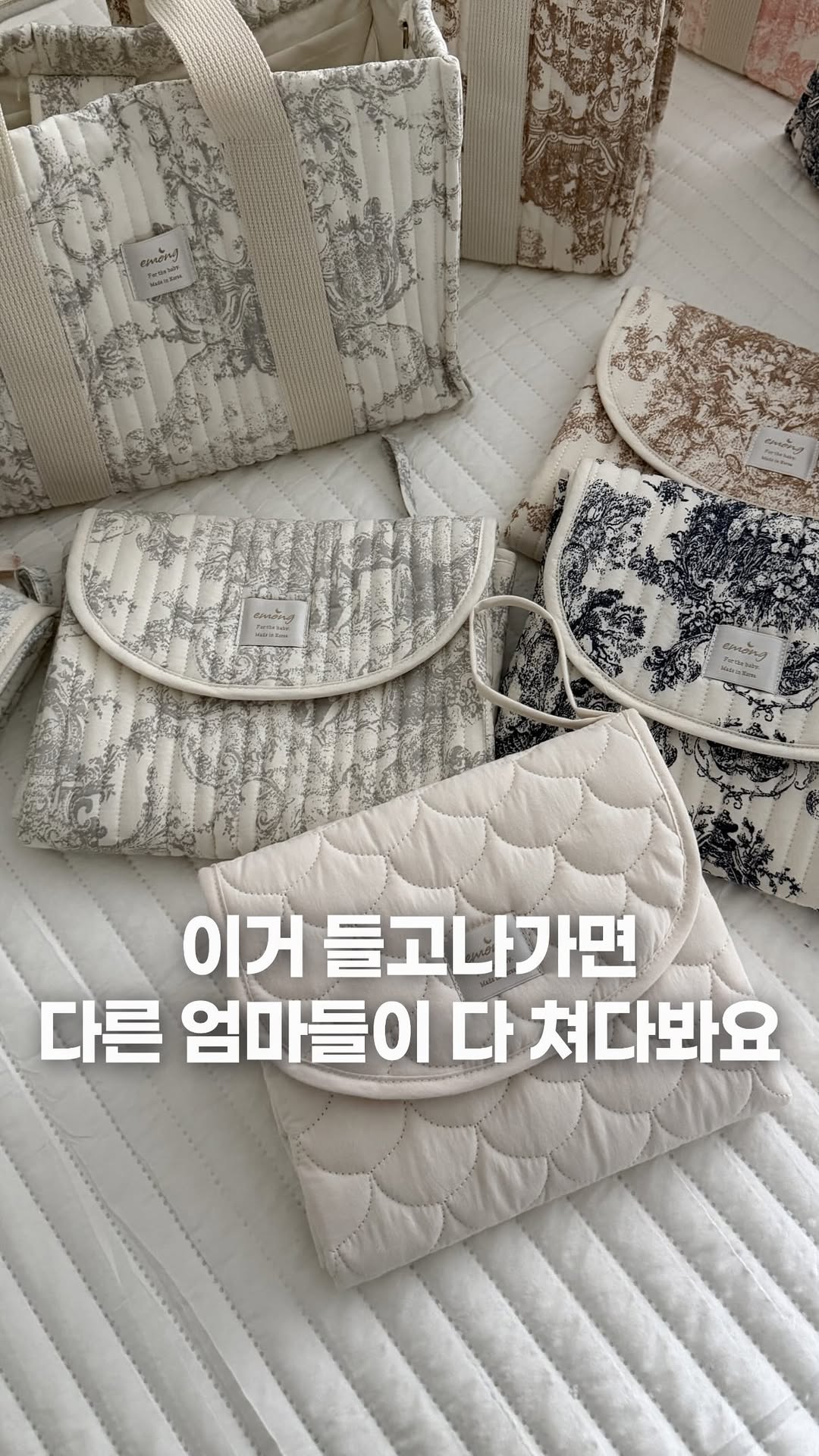 🙈 이몽 기저귀 패드 / 기저귀 가방 🏷️ 3월 23일 월요일 오전 10시 공구 오픈됩니다 🏷️ 댓글에 [ 알림 ] 이라고 써주시면 공구 오픈 후 알림 드려요 💛 ㅡㅡㅡㅡㅡㅡㅡㅡㅡㅡㅡㅡㅡㅡㅡㅡㅡㅡ 🔥 이몽 뜨왈드주이 기저귀 패드 아기 외출 필수템 !!! 휴대용 기저귀 패드에요 :) 아기랑 외출하면서 기저귀 어디서 갈아주세요? 수유실 찾아서 기저귀갈이대에 그냥 눕혀서 갈아주나요? 기저귀는 갈때는 다리부터 엉덩이, 등까지 모두 바닥에 닿이는데 차갑고 딱딱하고 위생적이지 못한 환경에서,, 갈아줄수없잖아요 우리 아기를 위해서 기저귀패드는 꼭꼭 챙겨서 들고다니세요! 🚀 𝐂𝐡𝐞𝐜𝐤 𝐏𝐨𝐢𝐧𝐭 ▪ 한손으로도 간편한 벨크로 ▪ 가방없이도 편리한 손잡이 스트랩 ▪ 푹포근한 6온스 누빔 원단 ▪ 기저귀 수납칸 ▪ 고밀도 순면 100% 아기가 사용하는거다 보니 당연히 피부에 자극없는 순면으로 제작했고 사계절 내내 쾌적하게 사용할수 있어요 바이오 워싱 가공을 통해서 먼지와 보풀이 잘 나지않는 원단으로 정전기 방지, 향균효과가 있고 위생적으로 오래 사용할수있어요 ! ⭕ 국내생산 & KC인증 완료 ⭕ 안전한 무형광 원단 거기다가 감성있는 디자인으로 요거 들고다니면 다들 이거 뭐냐고 물어봐요 ㅎㅎ 기저귀패드라고 보여주면 깜놀 !!! 우리 아이들 가방에 쏙 넣어서 외출할때 꼭 들고다니세요! ㅡㅡㅡㅡㅡㅡㅡㅡㅡㅡㅡㅡㅡㅡㅡㅡㅡㅡㅡㅡㅡㅡ 🔥 이몽 뜨왈드주이 기저귀 가방 고급스러운 패턴에 심플한 디자인으로 그냥 들고만있어도 고급짐이 묻어나요 !!! 기저귀 가방 쓰다보면 뭐든 터져서 가방 젖은적 한번쯤 다있죠? ⭐ 안감 방수 ⭐ 로 오염 걱정없어요 !!! 🚀 𝐂𝐡𝐞𝐜𝐤 𝐏𝐨𝐢𝐧𝐭 ▪ 300g의 깃털같은 가벼움 ▪ 6온스의 도톰한 누빔 ▪ 자석 단추로 손쉽게 열고 닫고 가능 ▪ 안감 방수로 오염 방지 ▪ 내부 포켓 5칸 이너백 필요없음 무엇보다 수납을 해보니 내부 포켓이 잘 나눠져있어서 따로 이너백 필요없겠더라구요 짐 많이 넣어도 가방 자체가 가벼우니 부담없고 어깨끈이 있어서 숄더, 크로스, 토트까지 3가지로 사용 가능 ⭕ 국내생산 & KC인증 완료 ⭕ 안전한 무형광 원단 고급스러운 디자인으로 엄마도 예쁘게 외출하세요! ㅡㅡㅡㅡㅡㅡㅡㅡㅡㅡㅡㅡㅡㅡㅡㅡㅡㅡㅡㅡㅡ 🏷️ 3월 23일 월요일 오전 10시 공구 오픈됩니다 🏷️ 댓글에 [ 알림 ] 이라고 써주시면 공구 오픈 후 알림 드려요 💛 💙 인스타 채널로 오시면 모든상품 공구 오픈 알람드려요 :)