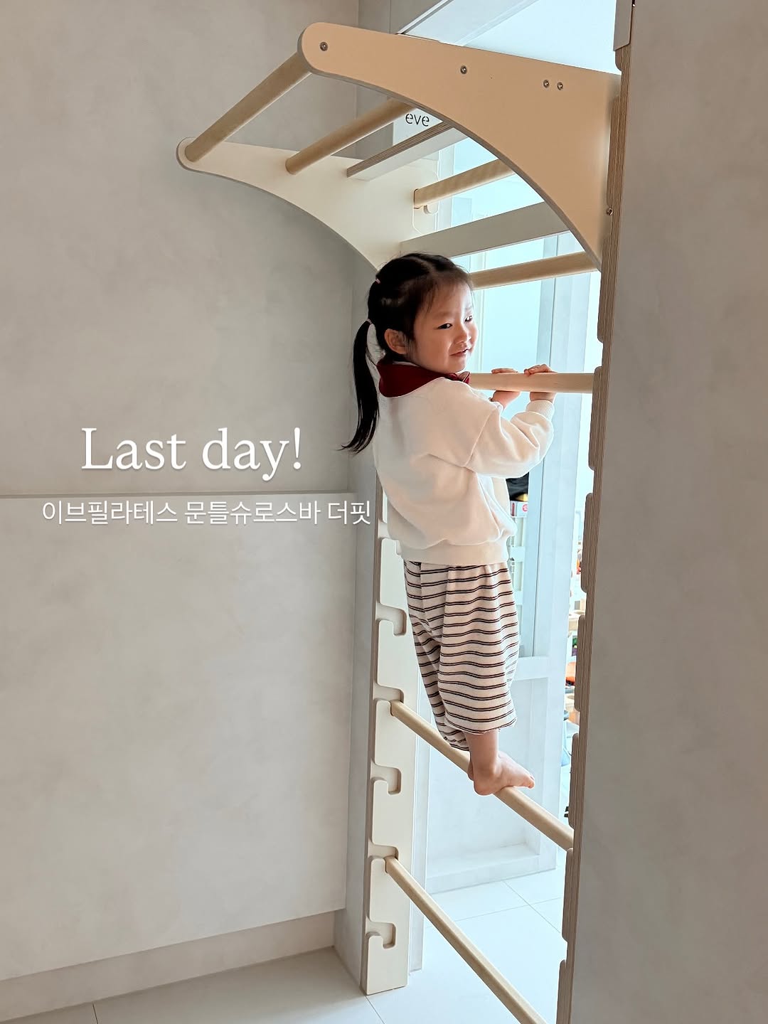 👉🏻문틀슈로스바 더 핏! 주문폭주 Last order! 자정에 링크가 알아서 닫혀서 마감안내드려요🥹 *기존 안내드린 치수보다 좁아도 설치가 가능하다고 하셔서 추가 전달드립니다 / 주문일단 하시고 톡톡문의주세요 ㅎㅎㅎ (톡톡문의상담 받았는데 설치안된다? 그럼 내일 바로 취소가능하니까요!) ✅만일 저 문사이즈 측정아직 못해서 주문못했어요~~ 하시는 분들의 경우❗️ 👉🏻치수 대략 기입해서 선주문하시고 톡톡문의주세요! 줄자로 치수 측정한거 사진찍어서 첨부해주시면 가장 정확합니다😎 👉🏻하원하는데 바람이 너무 세게 불어서 놀이터 못가고 집으로 바로왔는데 우리집이 놀이터니까 뭐 아쉬울게 없으요!!ㅋㅋ 남편도 출근하기전 턱걸이 깨작깨작(?)하다가 갑니다🏋️ 운동은 그런거라고 생각해요 재밌어야하고, 꾸준히 할수 있어야하는것! 아이있는 집이라면 매일 대근육파티 할수있는 슈로스바😌 육퇴가 빨라지면 더 좋고..?🤩 오늘 막차떠나갑니다🔥🔥🔥 #이브필라테스 #홈슈로스바