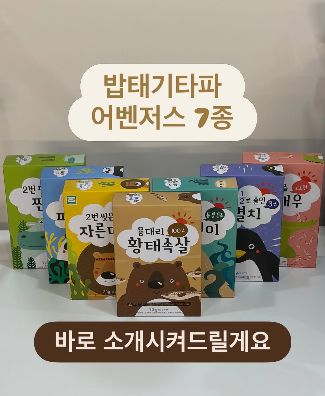 아이의 성장에 필요한 영양을 담은 다양한 해산물 재료로 구성된 바다모음입니다. 멸치, 파래가루, 황태속살 등으로 영양을 보충할 수 있습니다.