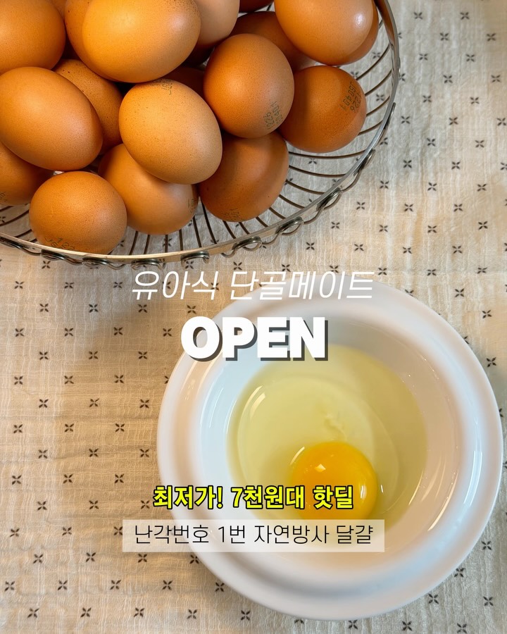✅ 댓글로 [ 달걀 ] 이라고 남겨주세요 잠시후 10시 ❗️자연 방사 난각번호 1번❗️ < 새벽햇살달걀 > 링크 빠르게 보내드릴게요 ! 빠르게 돌아온 달걀 2차 공구 🔥 지난번 1차 공구 때 받아보시고 이제 여기서만 주문할거라고 .. ☺️ 신선함이 마트에서 파는거랑 비교불가 !!!! 🍳 유아식 단골 메이트 달걀 ?! 🍳 유아식 시작하고 계란 구매율이 대략 2,3배나 늘었는데 (반찬 없을 때 간계밥 찬스 쓰잖아요 우리..💗) 뉴스보니 더 아무거나 못 고르겠지 않아요 ?! 자자, 대한민국 상위 1% ! 자연방사로 매일 자유롭게 뛰놀고 토욕하고 고단백 프리미엄 사료를 먹은 건강한 닭이 낳은 달걀을 !! 25년 공구가가 20구(1판 기준) 9천원대였는데 👉🏻 7천원대로 오픈합니다 ‼️ (농장 직송, 독점계약) ✅ 당일 산란, 당일 발송 ※ 최근 새벽햇살달걀 주문량이 너무 많아 익일발송으로 보내드린다고 합니다 참고 부탁드립니다! 📅 발송일 지정도 가능합니다! “외출해야하는데...” 걱정 마시고 “계란 아직 못먹은거 많은데” 또 걱정마시고! -> 받아보고 싶은 날을 지정해주세요! 👍🏼 ⋯⋯⋯⋯⋯⋯⋯⋯⋯⋯⋯⋯ 🎁 구매완료 이벤트 “구매완료+연락처 맨 뒤 4자리“ 남겨주세요 1️⃣ 3분께 20구 1판씩 더‼️ 2️⃣ 다섯분께 5,000원 현금 페이백 계좌로! (우와 ..... 체감가 얼마야 ) ⋯⋯⋯⋯⋯⋯⋯⋯⋯⋯⋯⋯ 🥚우연맘이 Pick한 새벽햇살달걀은 ✅ 완전 방사, 자유로운 토욕과 교미 A4보다 작은 좁은 케이지에서 사육되는 닭이 아닌 자유로운 환경에서 건강하게 자란 난각1번 유정란 (원래는 컬리나 코스트코 가서 주로 사먹었는데 가격, 거리로 힘듦) ✅ 항생제 ❌ 살충제❌ 산란촉진제❌ 모두 안쓰고 프리미엄 곡물만 먹여 키워요 ✅ 노른자와 농후난백이 뚜렷 당일 산란, 당일 배송으로 초신선함 유지 -> 비린맛 없이 고소함 극치 ✅ 3중 에어쉘 꼼꼼한 포장 혹시나 모를 파손에 대해 100% 부분환불 ⋯⋯⋯⋯⋯⋯⋯⋯⋯⋯⋯⋯ 📅 일정 2/20(금) 오전 10시 ~ 2/22(일) 단 3일간! 📍새벽햇살달걀 구성 20구 기존 공구가 9,900원 -> 7,900원 40구 기존 공구가 19,800원 -> 15,800원 60구 기존 공구가 29,700원 -> 23,700원 🚛 수량 상관 없이 4,000원 (60구 이상 주문해도 배송비 추가 되지 않아 지인, 가족들것 함께 주문해서 나누기 좋습니다) ❄️유통기한 산란일 기준 30일 이내 섭취 권장 구매 후 댓글 꼭 남기셔서 추가증정 혜택 기회도 놓치지 마세요 ! 🍀