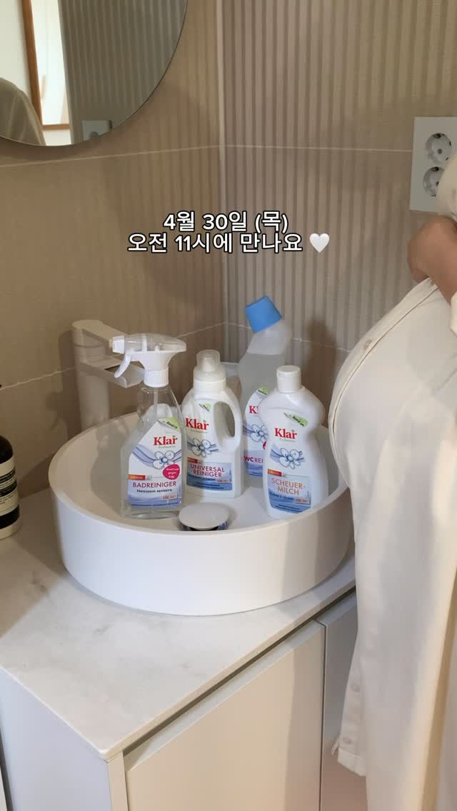 클라 공구예고 ) 100% 유기농천연세정제 독일에서 온 클라 🇩🇪 4차 오픈예고 겸, 저의 온 집안 사용법 언젠가 한 번 자세히 보여드리고 싶어 영상으로 담아왔어요 :) ✔️욕실세정제는 👉🏻 샤워하기 전, 청소하고 싶을 때 언제든 환기 비염 아이 걱정없이 바로바로 사용해주세요 - 임산부, 신생아 욕조 모두 가능 ✔️주방클리너는 👉🏻 싱크볼, 인덕션, 오븐 등 물때 ,얼룩 덕지덕지 일 때 써주면 점토입자가 착 밀착해 광이 나요. ✔️다목적클리너는 👉🏻 대청소할 때 주로 사용해요. / 공구 일정 / 4/30 (목) 오전 11시 - 5/23 자정까지 / 구성 및 혜택 / 욕실세정제 / 주방클리너 / 고농축클리너 / 변기클리너(new) - 모두 1개, 1만원대 미만으로 오픈할게요. / 클라 욕실세정제는요 / ✔️석유 화학성분 제로! 전성분 100% 유기농천연원료 👉🏻 신생아 욕조, 임산부, 아토피 환자도 사용 가능 👉🏻 샤워하면서 가능, 뜨거운 물 가능 ✔️ 유럽 인증 가장 하이레벨, 에코개런티 - 유기농100% 생분해성 100%여야 받아요 - 원료의 생산부터 폐기까지 지구를 생각한 제품만 받는 마크 ✔️ 향료 무첨가! 무향! ✔️ 100% 생분해, 비건 인증 ✔️ 100% 재생용기 사용 프로필링크에 자세한 블로그 포스팅 올려두었습니다. 궁금하신 점 댓글주세요 🤍