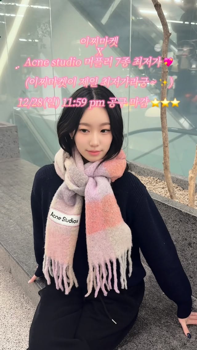 ✨ 마감 임박 공지 ✨ 이찌마켓 x 정품 Acne Studios 머플러 7종 최저가 마켓🧣🩷 ⏰ 12/28 (일) 밤 11:59 pm 칼 마감 현재 주문량 TOP 🔥 🥇 핑크 체크 🥈 블루 체크 나머지는 다 골고루 나가고 있어용 !! 🥹 둘 다 이미… 이찌픽이었잖아요 ⭐️⭐️⭐️ 모헤어 + 울 혼방의 도톰한 원단이라 목에 가볍게 둘러주기만 해도 포근함이 바로 느껴지고, 아크네 특유의 감각적인 컬러감 덕분에 어떤 룩에도 자연스럽게 포인트가 돼요 ✨ 하나만 더해도 스타일 완성되는 아이템!☺️✨ 🎁 연말 특별 혜택 ✔️ 2개 이상 구매 시 무료배송 ✔️ 정품 폴리백 + 쇼핑백 포함 → 연말 선물용 / 커플 아이템으로 정말 추천이에요 🤍 따뜻한 마음까지 함께 전하기 넘 좋아요♥️ 🎨 컬러 ◽️체크 머플러 핑크🩷 / 블루💙 / 그린💚 ◽️ 단색 머플러 핑크🩷 / 진그레이🩶 / 블랙🖤 / 카멜🤎 겨울에 꼭 필요한 머플러, 따뜻하게 목을 감싸주면서 스타일은 확실하게 살려주는 아이템 아크네 머플러에요 :) ☃️ 선물 만족도도 정말 높은 구성이라 자신 있게 추천드려요! 정품 폴리백 + 쇼핑백까지 매장 구성 그대로 함께 보내드려요! 최고의 연말 선물이 될 수 있게 예쁜 포장에 따뜻한 마음까지 담아 보내드릴게요 🎄✨ 궁금한 점은 언제든지 DM 주세요 🫶🏻 #이찌마켓 #아크네스튜디오 #머플러