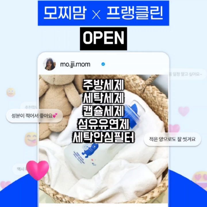 #공구오픈 🗓4월 7일 오전 10시 오픈🗓 💙맘가이드 1등💙 💙프랭클린 세제모음전💙 - 🚨링크 필요하신분들은 댓글에 '링크'적어주세요🚨 🚨오픈시, DM으로 구매링크 보내드릴게요!🚨 - 프랭클린 세제모음전 3개월만에 오픈합니다.☺️ 📌라인업📌 ✅️주방세제 ✅️세탁세제 ✅️캡슐세탁세제 ✅️섬유유연제 ✅️세탁안심필터(이염방지시트) - 🎖전라인 맘가이드 A등급보다 높은 클린마크 획득🎖 👉맘가이드1등 👉전성분 공개 👉비건인증 👉EWG 그린 등급 성분 👉유해물질 불검출 👉필수유효성분 - 비건 인증마크는 소비자들은 알기 어려운 세부 원료와 제조 공정까지 꼼꼼히 확인하고 검사한 후에 부여되며, 절차가 굉장히 까다로워요. - 프랭클린 마음에 들었던 부분 중 또 하나!! ✨️전성분 공개✨️ 그 만큼 자신있으니깐, 공개 안할 이유가 없는 거죠. - 🎈주방세제🎈 🥕젖병/유아식기 그리고 과일/야채까지 세척 가능해요.🥬 잘 모르시는 분들이 더 많으실 것 같은데, 식품용 기구/용기용 주방세제보다는 과일/채소용 주방세제를 고르시는게 좋아요. 말그대로 사람이 그대로 먹을 수 있는 과일과 채소 등을 씻을 수 있는 세척 세제이기때문! - 프랭클린 주방세제의 아주 큰 장점 중 하나.. 🔥열탕소독과 같은 균 감소 효과가 있어요.🔥 고온에도 살아남을 수 있는 주요 유해균을 99.9% 제거해준다는 점!! - 천연 계면활성제를 사용하여 안전하고 동시에 거품력과 세정력이 정말 우수해요.👍 기름기제거 기가막힌 점! 젖병 세척하면 뽀드득 그 자체~~❤️ - ❌️NO 가습기 살균 성분 ❌️NO 유해물질 ❌️NO 중금속 ❌️NO 유해세균 유해물질 전혀 없으니, 안심하고 사용하세요! 그리고, 실제 사용하시는 분들께서 보습력을 칭찬해주셨어요. 고무장갑 끼지 않고 사용할 만큼 세제 사용후에도 보습력이 좋다는 후기가 많았어요! 이건 저도 완전 공감!👌 - 🎈세탁세제🎈 프랭클린 세탁세제는 생활얼룩은 물론이고, 미세먼지, 과일, 야채즙, 소스까지 제거 가능! 아기옷부터 어른옷까지 온가족 사용할 수 있어요. - ✅️비건인증 ✅️99.9% 탈취력 ✅️고농축 중성세제 ✅️향료&색소 ZERO ✅️저자극 테스트 완료 ✅️유해물질 리스트 체크 완료 ✅️잔여성분 생분해 - ❌️NO 가습기 살균 성분 ❌️NO 피부 자극 및 알러지 유발 성분 ❌️NO 중금속 ❌️NO 주의 보존제 암모니아 탈취효과 99%로 민감한 신생아는 물론이고, 예민한 임산부도 사용 가능한 안전한 제품이에요. - 여러분 🔥프랭클린 캡슐세탁세제🔥 출시되었어요! 쿠팡에서 구매해서 사용해보고 편하고 좋아서, 공구로 가져왔습니다. 좋은거 함께 써요 여러분...❤️ - 🎈섬유유연제🎈 대부분 섬유유연제는 좋은 성분만 강조하고 위험 성분을 알리지 않아요. 섬유유연제는 전성분 표기 의무나 별도 인증 규정이 없거든요.🥺 프랭클린 제품은 전성분 공개에 필수 유효성분만은 넣어 만든 제품으로 신생아부터 임산부까지 사용가능해요. ✅️4급 암모늄 무첨가 ✅️향료&색소 ZERO ✅️정전기 방지 ✅️비건인증 - 🎈세탁안심필터🎈 세탁안심필터는 어른 옷이나 아기 옷에서 빠진 염료가 다른 옷에 스며들기 전 빅사이즈의 이염방지 필터로 흡수하여 옷의 이염을 막아주는 시트에요 ! 📌다른 이염방지시트와 다른점📌 ✅️염료+형광증백제 흡착 ✅️빅사이즈&대용량으로 넉넉하게 염료를 흡수 ✅️100% 식물성 원단으로 자연 생분해+내구성이 강함 - 모찌네는 아기꺼꺼, 어른꺼 모두 프랭클린으로 통일해서 사용중이에요. - 📌유통기한📌 ✔세탁세제 본품/리필:28-07-23 ✔섬유유연제 본품/리필:28-07-23 ✔캡슐세제 본품/리필:28-04-09 ✔주방세제 본품/리필:27-11-03 ✅세탁안심필터:유통기한 없어요🙂 평생 쓰셔유.. - 📢NOTICE📢 배송 과정에서 발생하는 파손을 방지하기 위해 동일한 운송장 번호로 등록되더라도 2박스 이상으로 나누어 분리 배송 될 수 있습니다. - 📌 공구일정 📌 4월 7~10일 - 📌 공구가격 📌 스토리 확인🩷 ✔️무료배송 ✔️익일 순차출고 ✔️제주,산간지역 추가 배송비 발생 ✔️브랜드 or 택배사 사정에 따라 출고일 1-3일 지연 가능성 - 📌구매링크📌 제 프로필 링크 참고해주세요 📌구매인증이벤트📌 댓글에 '구매완료+폰뒷자리'남겨주세요! 추첨통해 '네이버페이 5000원'선물드릴게요🎁