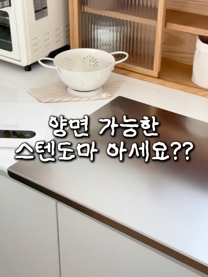 오픈 @seo_do.a 와 함께합니다🫶🏼 🩵OPEN🩵 📍스토피아 올스텐 304 양면 도마 🩶위생적인 스테인리스 304소재 🩶부식과 오염에 강한 스테인리스 304는 세균 번식을 최소화! 양면 사용 OK!! 가정에서 도마 그냥 쓸 때가 많은데 구분해야 되는 거 아시나요? 양면 사용이 가능해서 한쪽 면은 🥦채소 🍒과일용 다른 한쪽 면은 🥩육류 🐟생선용으로 구분할 수 있어 교차 오염을 방지하고 위생적인 조리가 가능!! ✅습기 NO, 위생 OK ✅주방 상판 맞춤형 디자인 ✅칼질 자국 최소화 ✅냄새가 잘 배지 않는 소재 ✅다양한 활용도 ✅식기세척기 OK @seo_do.a 링크로 구매가능하세요🫶🏼 #스토피아 #스텐도마 #도마 #도마추천 #도마공구