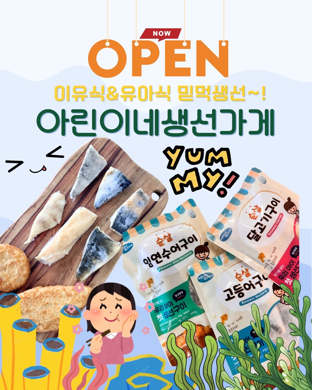 ❝OPEN❞ 이유식&유아식 생선고민 끝! 아린이네생선가게 12차🐟 💌[아무댓글] 남겨주시면 오픈시 특가링크 디엠전송 알림 보내 드릴게요~😉 🌈아린이네는 OEM 아님...👍🏻 하나하나 정성들여 수작업으로 진행하기에 조기품절될수 있습니다 양해부탁드립니다🙏🏻 ⭐️4/20(월) 오전11시~4/23(목)⭐️ ⭐️밥새우&멸치도 함께 옵니다!!!(옵션선택가능) ─────────── ✅구매완료 이벤트 구매완료❤️+휴대폰뒷자리 남겨주세요~! 이번 선물은 꼭 받아가셔야합니도.. 아린이네 역대급 미친 신작! 1️⃣쫄뱅이 (쫄면+골뱅이) 10명 👉🏻 엄빠꺼! 2️⃣스벅쿠폰 5명 보내드릴게요💓💓💓💓 ─────────── 💛우리도 엄마가 처음인데😣 울애기들 골고루 먹이려다보니 참 쉽지 않아요 💛일주일에 2~3회 생선 권장량은 알고있으나! 손질도 어렵고 비린내 잡기도 어렵고 도대체 어떻게 구워야할지 감이 안온다면 주목~! 💛아린이네 생선가게는 인천에서 오래동안 생선구이전문점을 운영하신 인천집 가업을 이어받아 실제로 생선, 수산물 만을 “전문적”으로 취급하는 해썹인증업체로, 💛기름없이 특수오븐으로 100%익혀서 나오기 때문에 우리 엄마들의 고민을 해결해준곳이라는점! 💛생선 굽는거 은근 어려운데 익혀져 나오니까 아빠도 쉽게 밥차려줄수 있다 아자아자!! 💛가시가 99% 제거 되어 나오기 때문에 울 애기들도 엄빠들도 함께 쉽고 간편하게 식탁에 언제든지 생선반찬 올려주세요 💛이유식도 유아식도 모두 가능합니다~! 저희 둘째 생선 이유식도 아린이네 생선으로 모두 해결중! 비린내 없고 깨끗하고 정말 좋아요 ✅아린이네생선가게 ✔️기름없이 특수 오븐 수분조리 ✔️이유식, 유아식, 엄빠 반찬까지 해결가능 ✔️이렇게 통으로 포 떠서 수작업으로 하는곳은 국내 유일무이, 깔끔한게 딱 보이죠 조각난생선들과 비교불가⭐️ ✔️가격대비 중량비교도 꼭 해보기! ✅아린이네 생선가게 12차 라인업 🏷️구성:생선 5종 원하는대로 골라담기! (5종중 3종을 선택할수 있는 세트구성입니다) *이번에 ‘대구’는 수급 문제로 제외 *생선 5종: 대구(제외) / 고등어 / 삼치 달고기 / 가자미/ 임연수 ✅추가옵션: ✔️가자미까스 ✔️새우까스 ✔️정치망 멸치 ✔️밥새우(new) (아시죠? 까스 완전 빠삭~! 정말 맛있습니다..⭐️) 🟡흰살생선: 이유식부터 🟡등푸른생선: 돌이후 ✅소비기한: 1년 (냉동보관) (1~2주이내 최신제조) ✅배송: 롯데택배, 배송일지정불가 ‼️4/21(화)부터 순차 출고됩니다‼️ * 제주배송가능 ✅고객센터: 아린이네생선가게 네이버 톡톡문의 또는 010-9329-1972 ⭐️공구텀: 3개월 #아린이네생선가게 #유아식 #아기생선 #이유식