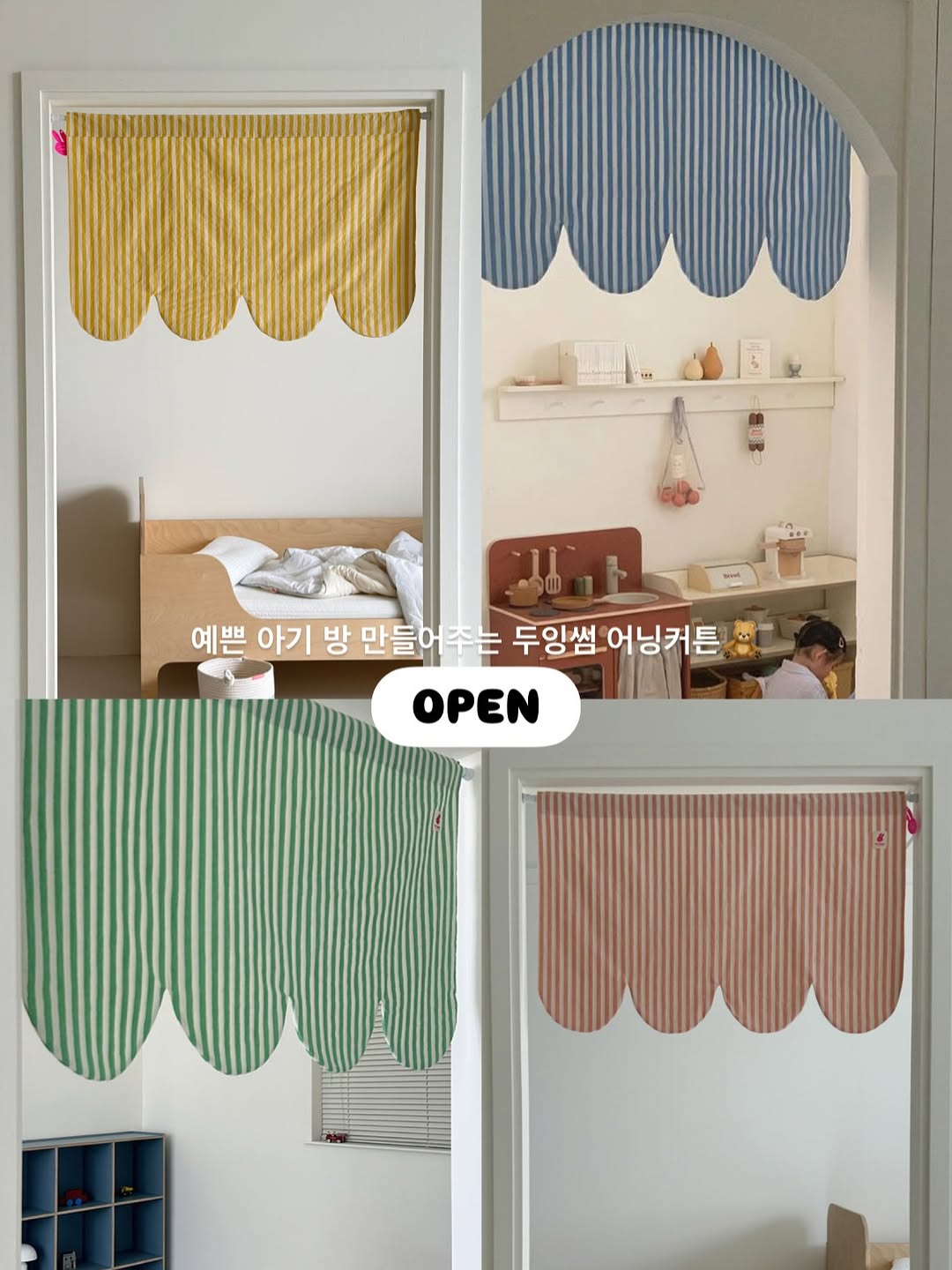 아기방 꾸미기에 필수인 두잉썸 어닝커튼! 타공 없이 압축봉으로 설치 가능하며, 귀여운 네 가지 색상으로 제공됩니다. 한정수량으로 진행되니 놓치지 마세요!