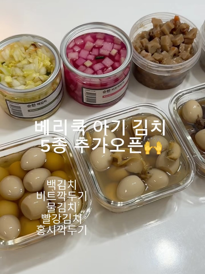 베리쿡긴급공지! #아기김치 5종 추가오픈 💟오늘 공구 오픈한 베리쿡 유아반찬! 이번 차수는 김치는 빠졌는데 요청하시는 분들이 많아 본사에 부탁드려 같이 오픈할 수 있게 되었어요! 🙌 ❗️김치 원하시는 분들 베리쿡 김치 꼬옥 한번 먹여보세요! 💟댓글에 <링크> 달아주시면 바로구매 가능한 링크 보내드릴게요! ————— 🥹제가 율아 두돌 전부터 정말 수많은 김치 브랜드 다 먹여봤는데요… 거부. 거부.거부…. 한입먹고 그 다음 거부.. ❗️김치 한통 다먹은건 베리쿡 김치가 처음이에요. 지금까지 아기김치 공구는 하지 않은 이유기도 해요. 아무리 좋아도 율아가 안먹는 걸 할수 없으니까요 ㅠㅠ 💟그런데 베리쿡 김치는 그만큼 자신있고! 실제로 베리쿡에서도 김치 매출이 1위라고 하는 만큼 아이들이 잘먹는 김치입니다:) ✅김치 라인업 백김치 비트깍두기 물김치 빨강김치 홍시깍두기 (전부 250g입니다) ✅돌 이후 권장 백김치 물김치 비트깍두기 홍시깍두기 ✅두돌 이후 권장 빨강김치(소량의 고춧가루!) ✅소비기한 김치 제조일로부터 30일(제조일 표기) 🚨배송 1. 영양밥/국/반찬3종은 주문제작 발송이라 공구 종료 후 주문마감/ 4/23(목)에 만들어서 일괄출고됩니다. 2. 장류/함박/장조림 주문 시 오전 8시 이전 주문 까지 당일 발송, 이후 주문은 익일 출고 3. 영양밥/국/반찬3종을 장류나 함박 장조림과 같이 주문하시면 전부 4/23(목) 일괄출고됩니다. 4. 김치만 주문 시 평일 월~금 매일 출고됩니다! ✅공구기간은 4/17(금)~ 4/20(월), 총 4일간 진행됩니다!