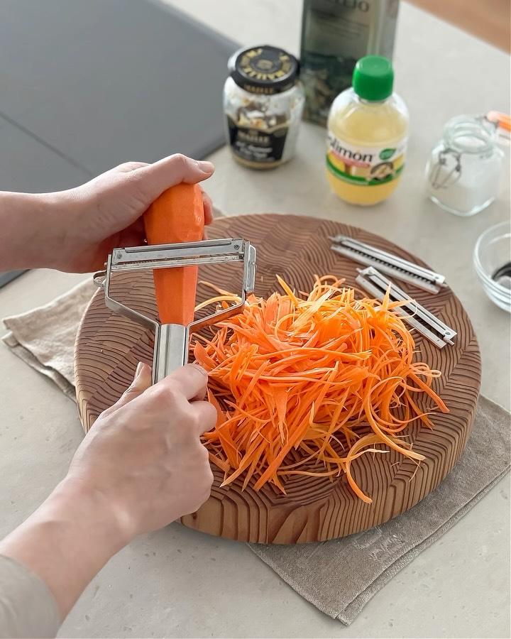 요리할 때 채칼 많이 사용하시죠🙂 근데 잘 안 썰리는 제품 쓰면 오히려 더 힘들고 손목까지 아프더라구요 저도 그래서 이것저것 써보다가 올스텐 스피드 필러 세트으로 바꿔봤는데요 확실히 다르다는 느낌이었어요 절삭력이 좋아서 힘을 많이 주지 않아도 부드럽게 썰리는 게 느껴지더라구요 토마토 껍질도 자연스럽게 깎일 정도라 사용하면서 조금 놀랐어요 사과나 감자 같은 것도 훨씬 수월하게 손질 가능하고 시간도 많이 줄어드는 느낌이에요 특히 얇은 채칼이 있어서 샐러드용 채썰기 할 때 정말 유용하게 쓰고 있어요 아이들도 먹기 편한 굵기로 썰려서 식감 부담 없이 잘 먹더라구요 올스텐이라 위생적으로 관리하기 쉽고 세트 구성이라 활용도도 높아서 데일리 주방템으로 정말 추천드려요 💛 📢 4월5일-재고 소진시 마감 🌈상단의 포유홈 프로필 링크에서 지금바로 확인해보세요