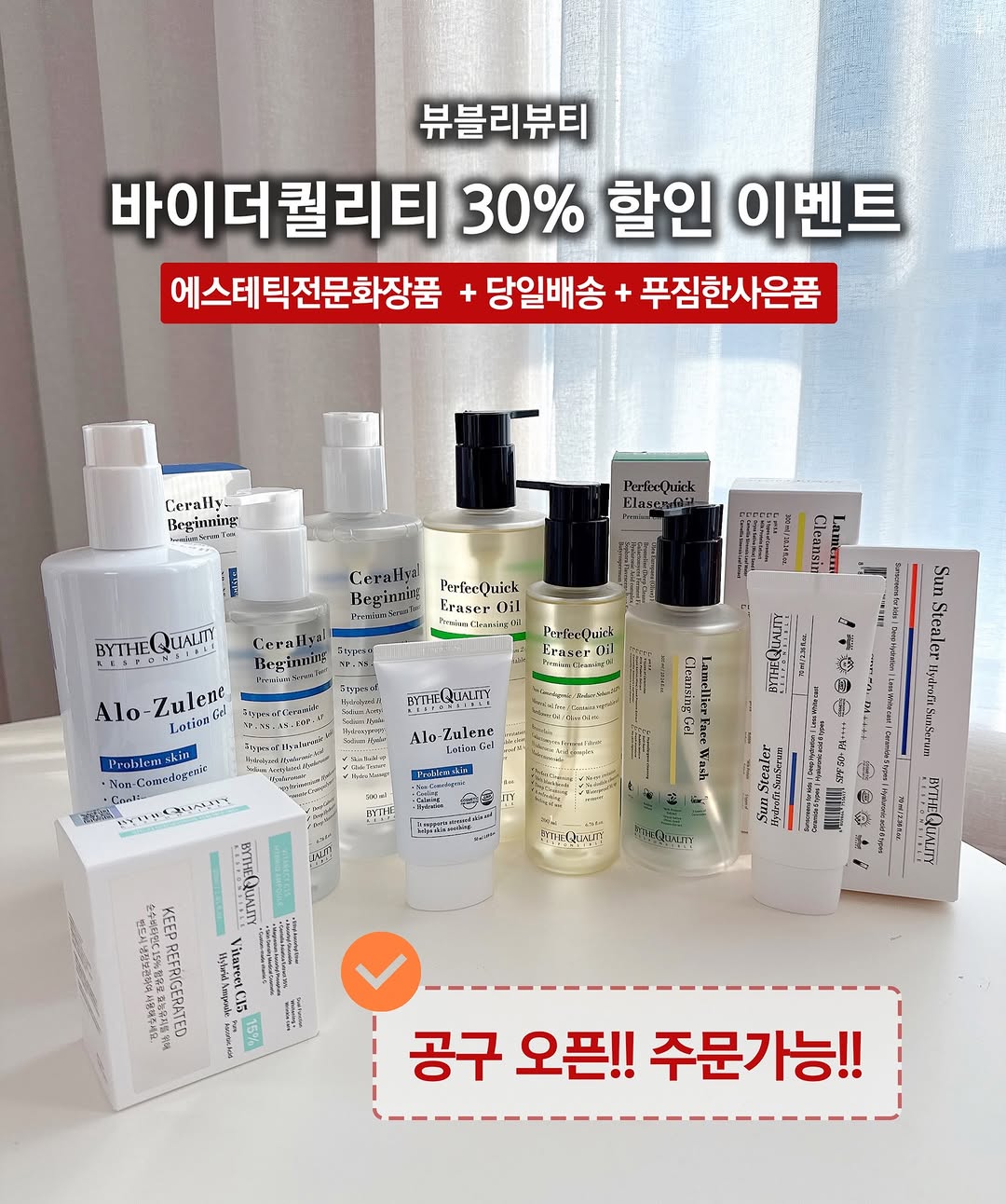 ‼️바이더퀄리티 3일동안 공구‼️ 30프로 할인 + 뷰블리쿠폰 즉시 사용 가능 🙏🏻 평일 오후 1시 주문 건 까지 당일 배송 출발 합니다 🚀 #뷰블리뷰티 #바이더퀄리티 #세러히알비기닝토너 #바이더퀄리티공구