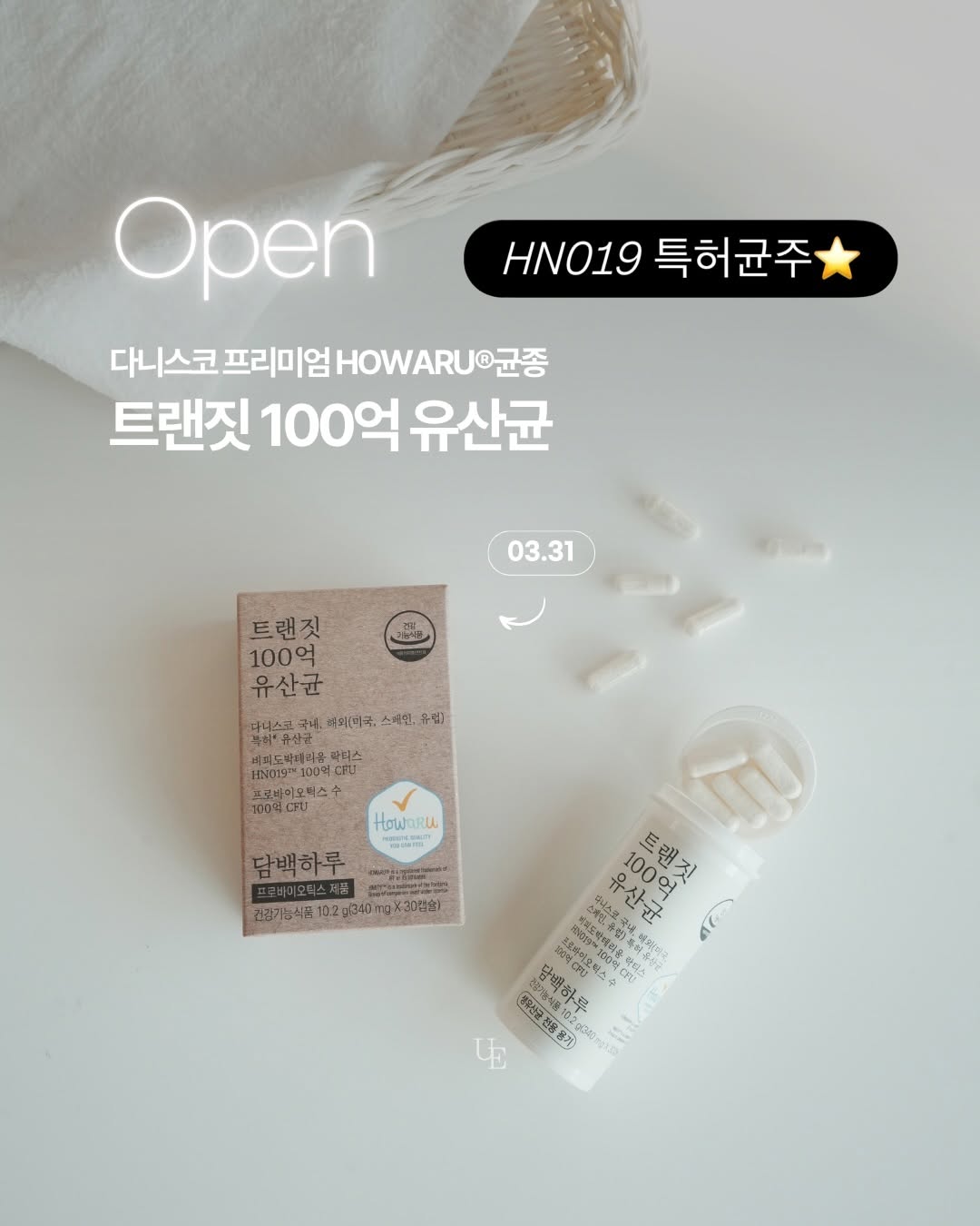 단 하나의 목적, 원활한 배변활동을 위해 설계된 담백하루 100억 프로바이오틱스를 선물로 드립니다💝 다니스코 HOWARU 트랜짓 비피도박테리움 락티스 (비피더스균) HN019 보장균수 100억 CFU를 유산균 전용병 용기로 포장한 프리미엄 프로바이오틱스를 경험해보세요😀 ✔️이 제품에 사용된 원료인 비피더스 균주인 비피도박테리움 락티스 HN019는 111개 이상의 과학 논문에서 충분히 연구되었습니다! ✔️이 유산균은 위산에 잘 살아남는 균주에요!! 비피더스균 HN019는 내산성이 강해 위산을 원활히 통과하는 것으로 확인되었습니다!! ✔️특별히 HOWARU 라는 표시는 다니스코 유산균 중에서도 가장 프리미엄 유산균에만 붙이는 로고입니다 균종 선별부터 FDA GRAS 등재까지 까다로운 검증을 통과한 유산균만이 로고를 사용할 수 있어요 ✔️유산균 전용 특허 용기는 온도와 습기를 3중으로 차단해서 실온 보관이 가능합니다 트랜짓 100억유산균은 유통기한 끝까지 100억을 보장합니다 🧐어떻게? 🔻완전 밀폐형 습기 차단 뚜껑으로 습기 및 외부 유해물질 1차 차단 🔻외부 수분과 직사광선을 차단하는 외벽으로 2차 차단 🔻수분 흡수하는 방습 내벽으로 3차 차단합니다 냉장보관 필요 없어요!!🙅🏼♀️ 상온에서도 유산균 끝까지 100억을 보장 유지하는 기술력을 경험해보세요👍🏻 ✔️하루 1알씩! 식후보다는 공복이 더 좋은 균주입니다 🫙아침에 일어나서 빈속에 한 캡슐 딱 드세요! 냉장고 보관 필요 없고 가방에 넣어두고 어디 다닐 때나 여행 때도 통째로 가지고 나가면 되고 얼마나 편해요 언제 어디서나 이 100억 유산균 하나로 배변활동이 어려울 때 드셔보세요! 평소에 부담되어서 못 드셨던 분들! 이번 제 공구에서 사드셔도 좋아요 제가 특별히 가져온 정가 대비 엄청난 할인률 1개월 만원대 가격 구성 너무 좋잖아요 최대 60% 할인인데 9개월분으로 구매하시면 비타민D 한박스 증정드려요!! 완전 득템!!⭐️ 아시죠..? 9개월분 옵션에 비타민D 전원 드리는 이벤트는 진짜 극히 드물어요❗️❤️🔥 진짜 좋은 유산균 <반값> 이상에 가장 경제적으로 드셔보세요 넘넘 좋아요!! 사실상 회사에 손해일수도 있겠지만..? 제가 이 정도는 해드릴 수 있으니까요 단 하나의 목적.!! 원활한 배변활동을 위해서 만들어진 정말 고급 비피더스 균주입니다!! 얼른얼른 모이세요 ^^ 🔥@yakstagram_ 프로필 링크에서 지금 구매 가능합니다!! 👍🏻여기까지 읽으셨다면 아무 이모티콘이나 남겨주세요 랜덤으로 HN019 비피더스균 다니스코 호와루 프리미엄 균주로만 꽉 채워진 트랜짓100 본품 한박스씩 선물로 드릴게요😆