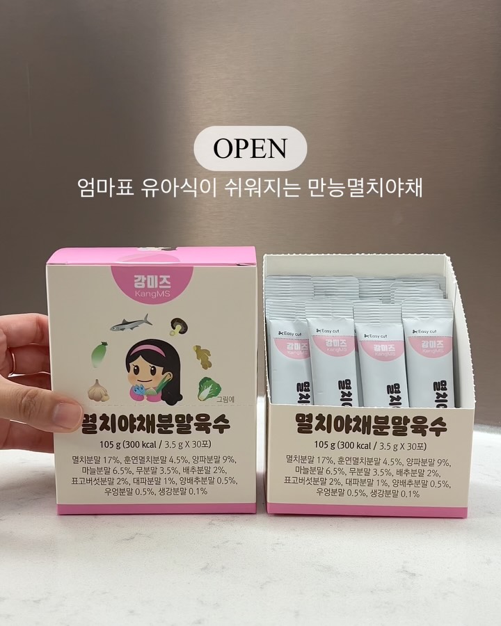 댓글에 <레시피> 남겨주시면⬇️⬇️ ✔️초간단 10가지 국 레시피 ✔️초간단 10가지 나물 레시피 ✔️만능멸치야채 구매링크 만능멸치야채 활용한 두가지 레시피 피드와 만능멸치야채 구매링크 DM으로 보내드릴게요💛 🎉사전이벤트 당첨을 진심으로 축하드려요🎉 @bxxk._.mxm_ @taeo__zip 📩디엠으로 성함/연락처/주소(우편번호) 남겨주시면, 만능멸치야채 본품 한상자 보내드릴게요🙌🏻 🎁이벤트 ▫️구매후, 댓글에 구매완료+몇박스+전번 뒷자리4개 남겨주시면, 추첨을 통해 10분께 신세계상품권 보내드릴게요🫶🏻 *구매인증 댓글도 이 게시물에 남겨주세요. ➖➖➖ 🙋🏻♀️안녕하세요:) 강미즈에요! 우리 아이 밥태기의 시작.. 초보엄마는 싱거운 채수탓인가?? 멸치육수만들려니 귀찮고..😅 나물엔 소금? 조미료 좀 넣어볼까? 죄책감..🥹 만능멸치야채로 싹- 해결했어요!!!!!! 📍만능멸치야채 ▫️화학첨가물 정말 하나도 넣지않았어요. ▫️오직 남해멸치&국내산야채 황금비율 찾아 감칠맛 냈어요. ▫️간편하게 사용할 수 있도록 1포(3.5g)씩 포장했어요. ▫️국,탕,무침,볶음,찜,구이,부침반죽, 생선, 샐러드, 고기찍먹, 주먹밥, 등 만능으로 사용해요. ▫️유아뿐만아니라 어른도 함께 먹어요. ▫️HACCP 인증 제조시설에서 생산해요. 📍좀 더 자세히 알려드려요. ▫️9가지 야채는 표고버섯, 배추, 무, 양배추, 우엉, 마늘, 양파, 생강, 대파 사용했어요. ▫️다시마도 국내산 사용했어요. ▫️멸치 비린맛 완전 잡았어요! ▫️갑각류, 조개류 등 알레르기에 민감한 원재료는 사용하지 않았어요. ⬇️⬇️감사한 후기⬇️⬇️ ✏️야채를 안먹던 아가인데 나물반찬만 집어먹어요. ✏️밥태기와서 안먹던 아가가 먹기시작했어요. ✏️국 안먹는 아가인데 그릇째 들고 마셨어요. ✏️만소야+참기름+만능멸치야채만 뿌려 밥한그릇 뚝딱했어요. ✏️여행가서도 유용하게 사용했어요. ✏️온가족이 함께 먹기 좋은거 같아요. ✏️비린내 날줄 알았는데 비린내 1도없이 그냥 먹어도 맛있어요. ‼️육수로 사용시 참고해주세요‼️ <강미즈 만능멸치야채>는 분말을 녹이는 첨가물 (덱스트린)을 사용하지않아 물에 탔을때 원물가루 그대로 보존! 정말 멸치랑 야채원물먹는 효과까지 있어요!! 아이생각하는 엄마의 마음 그대로 담아 정성껏 정직하게 만들었으니 건강하고 맛있는 유아식 안심하고 만드실 수 있어요🫶🏻 🍯꿀팁 원물가루없이 좀 더 깔끔하게 사용하고 싶다면 국공기에 뜨거운 물붓고 분말 잘 섞은 다음 1-2분정도 두고 가루 갈아앉히기 >>위에 육수만 냄비에 살짝 부어 사용하기 ‼️무염 유아식 참고해주세요‼️ 정말 질좋은 천일염 소량 포함되어있지만 나트륨 함량은 매우 낮아요. 참고로 돌이후 아가들 최소 나트륨하루 충분섭취량은 370mg인데 <강미즈 만능멸치야채>는 한포 모두 사용해도 189mg이에요! 육수로 첫 사용시 1포/물300ml이상 사용해 국끓여 2-3번 나누어 먹이시고, 다른반찬에 사용시엔 소금만큼 조금씩 뿌려사용해주세요. ‼️하나더 성분표기에 보시면 유기농설탕 극소량 포함 되어있어요! 이 부분은 단맛을 내기 위함이 아닌 멸치의 비린맛을 잡기위해 정말 극소량 사용한 부분이라서 당성분 테스트에는 당이 0%로 나왔어요! 그래서 설탕은 거의 없다고 보시면 되요🙌🏻 제품박스에서도 당류 0%확인가능해요😁 ‼️육수로 사용시 1포기준 물양 추천드려요. ✔️물150ml(성인) ✔️물200ml(적당한 간이 필요한 아기) ✔️물250ml(저염아기) ✔️물300ml이상(초기유아식아기) ‼️반찬 감칠맛용으로 사용시 ✔️기호에 맞게 조금씩 뿌려 남은 가루는 집게로 집어 보관해두고 사용해요. ✔️소금처럼 짠 느낌이 아니에요. 소금보다 넉넉히 뿌려서 사용하셔두되요. 📍특별가 구성 ▫️1박스 30포₩10,500 ▫️2박스 60포₩19,900 📍배송관련 ▫️3만원이상 무배 (제주&도서산간 3천원) ⚠️온가족 함께 드실경우 3박스이상 쟁이기 추천드려요! 📍소비기한 ▫️27년 7-9월로 넉넉해요. 만능멸치야채로 건강하고! 쉽고! 즐거운 유아식 함께 만들어요💛
