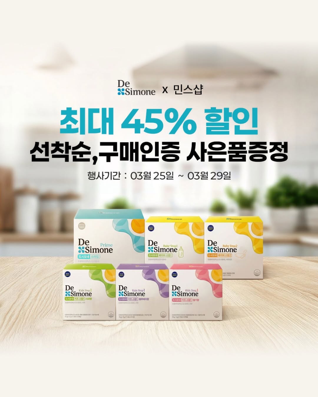 3/25(목) 오전10시 드시모네 OPEN‼️ #구매완료이벤트 있어요 🎁키즈스텝 한달치 30명 증정 구매후, 댓글 남겨주세요✍🏻 우리가족 1일1떵💩 지킴이 드시모네 유산균 드시모네 가격 구성입니다! 구매하실 때에 1포당 가격만 생각해주세요 🔥최저가 입니다 📦모두 무료배송!! 👶🏻베이비스텝부터~ 👧🏻👦🏻키즈 스텝~ 프라임 유산균까지! 모유, 분유수유하는 아기부터 어른들까지 온가족 모두 섭취할 수 있도록 모두 준비했어요! 선착순 100명 🎁드시모네 프라임 10포 증정!!! 저번보다 인원 늘려서 100명!! 시간 되시는 분들은 선착순 대기하셨다가 빠르게 주문해주세요!!! 🏆국내유일 🏆국내최초 1000억 보장균수 드시모네는 진짜 2주만 꾸준히 드셔보시면 확실한 효과 느끼실 거예요 👶🏻이런 분 아기 꼭 먹여주세요 💛베이비스텝1,2 - 황금색 변을 보기 힘든 아기 - 장 면역 조절이 필요한 아기 - 장내 유익균 증식이 필요한 아기 - 아기의 장이 예민해 묽은변으로 걱정되는 엄마 - 아기의 배변활동이 힘들어 속상한 엄마 👶🏻이런 아이들 꼭 먹여주세요 💜키즈스텝 - 평소 배변활동이 원활하지 못한 아이 - 면역 조절이 필요한 아이 - 장 내 유익균의 증식이 필요한 아이 - 무기질 보충이 필요한 성장기 아이 - 불규칙한 식습관, 생활습관으로 장 건강이 염려되는 아이 - 정상적인 면역기능 저하로 아연 섭취가 필요한 아이 🙋🏻♀️🙋🏻♂️이런 분 꼭 드셔야 해요 🩵프라임 ✓ 출산 전 후, 배변 문제가 있는 여성분 ✓ 장시간 의자에 앉아 활동량이 부족한 학생, 직장인 ✓ 장내 유산균이 감소하여 기능이 원활하지 못한 노년층 ✓ 잦은 외식으로 장 관리가 필요하신 분 ✓ 장 건강을 건강하게 유지하고 싶으신 분 ✓ 규칙적인 배변 활동을 원하시는 분 🟡베이비스텝1 👶🏻 (신생아~ 12개월/모유 및 분유 수유 중인 아기) 🟡베이비스텝2 👶🏻 (12개월~ 36개월/이유식을 하는 아기) 🟡키즈스텝1 👧🏻 (36개월~7세/어린이집 & 유치원 다니는 아기) 🟡프라임 👦🏻👩🏻🧑🏻🧓🏻👵🏻 (8세부터~ 온가족용) 장 건강 유산균은 선택이 아니라, 필수입니다☝🏻 10시30분 이전 주문건까지 당일발송이에요 뜨거운 반응의 드시모네!! 민스샵 홈페이지에서 오전 10시에 만나요👋🏻