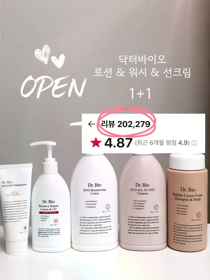 [공구 오픈] 닥터바이오 워시 & 로션 1+1 👶🏻 👉🏻 댓글에 ‘링크‘ 달아주시면, 구매 링크 보내드릴게요 .ᐟ ____ 🎁 구매 인증 이벤트 구매 완료 후 댓글에 [구매완료 + 전화번호 뒷 4자리] 남겨주시면 추첨을 통해 네이버페이 3,000원 보내드릴게요 🫶🏻 🗓️ 공구 일정 4월 17일 ~ 4월 20일 ____ 사실 제가 많이 건조한편인데 저희 아기가 그걸 그대로 닮았더라구요 😭 그래서 신생아때부터 정말 많은 로션을 구매해서 썼는데 호전이 안되다가 괜찮은 로션을 찾아 썼는데.... 너무 비싼거에요ㅠㅠㅠ 그래서 이대론 안되겠다싶어 다른 제품을 또 찾기 시작했고 물건 구매할 때 리뷰를 많이 참고하는편이라 리뷰 많은 제품을 믿고 구매해봤어요 (리뷰 20만건) 근데 성공해서 정착해서 쓰고 있어요 .ᐟ 이번에 1+1 으로 소개해드리게 됐고 지금부터 쓰기 좋은 선크림도 함께 가져왔으니 온 가족 로션 & 워시 최저가로 구매하세요 .ᐟ #닥터바이오 #닥터바이오공구 #아기로션 #아기워시