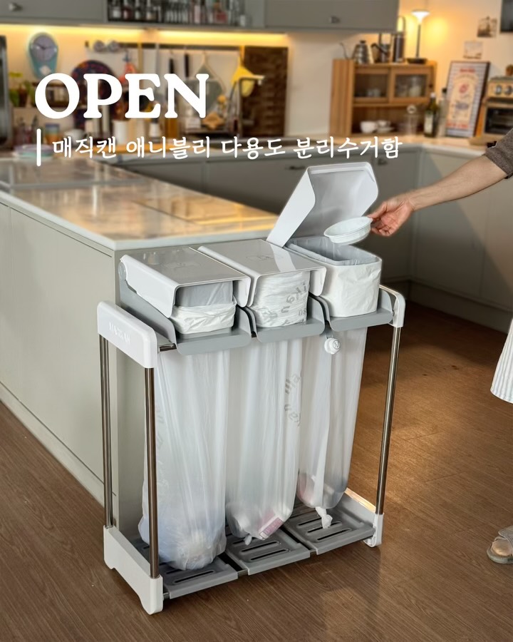 🧡매직캔 애니블리 다용도 분리수거함 2종 공구예고 분리수거 스트레스 줄여주는 깔끔템! 매번 분리수거 할 때마다 “이건 어디 넣지?” 헷갈리고 번거로우셨죠? 이건 진짜 간단하게 정리돼요 👉 한 번에 끝내는 분리수거 시스템 초간단으로 정리 습관 잡기 50L 대용량 + 3가지 분리 가능 부피 큰 쓰레기도 여유 있게, 종류별로 깔끔하게 😊 조립할 땐 하단 고정 장치 양쪽 봉 끝에 기름칠(식용유 가능)하여 조립하게 누구나 쉽게 조립할 수 있어요! 냄새 차단 특허 비닐 사용 생활하면서 가장 신경 쓰이는 냄새까지 잡아줘요 연속 리필 방식이라 비닐 교체도 끊김 없이 편하게 애니크러쉬 캔 압축 기능 (추가옵션 구매 가능) 캔 부피 줄여서 공간 활용까지 스마트하게 주방 한 켠에 두기만 해도 깔끔한 정리 + 위생 관리까지 동시에 해결 😊 라라홈에서 준비한 실속템 곧 라라홈에서 오픈하니까 놓치지 마세요 ✔️ 🕒 4월27일-4월30일(총 4일간) 🙋빠른 구매를 원하시면 흔적 남겨주세요 좋아요❤️로 알림 드릴게요:)