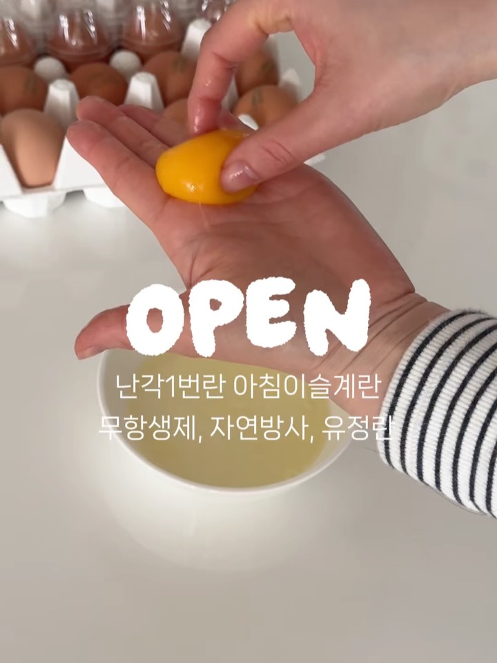 #공구오픈 아침이슬계란 난각1번란 💌댓글에 <링크> 달아주세요. 바로구매 가능한 링크 보내드릴게요‼️ 🎁구매완료이벤트 구매완료+전화번호 뒷자리 댓글 달아주세요 추첨통해 네이버페이 3천원권 보내드릴게요! ✅구성 20구 7,900원 40구 15,800원 60구 23,700원 *금요일에 오픈이라 주말이 껴있기 때문에 배송은 금요일 낮 12시 이전 주문건까지 당일발송, 그 이후.주문건은 월요일 배송됩니다! 🥹아마 이 가격은 보기 힘드실거에요🥹 만약 달걀 삶아서 드시는분들은 무조건 60구 추천드려요💙 ✅공구기간: 4/3 - 4/10 ————— 율아가 처음 계란을 먹었을 때부터 지금까지 정말 몇번 제외하고는 난각 1~2번란만 찾아서 먹였거든요. 그런데 사실 마트에 포장지는 무항생제, 유정란이라고 쓰여있는데 막상 집에서 까보면 4번란이라서 속은적이 한두번 아니에요. 저같은 분 많으시져..? 🥹게다가 가격은 왜이렇게 비싼지. 달걀 소비량이 진짜 많은데 아침이슬계란 자연방사 무항생제 유정란! ✔️산란촉진제 x ✔️성장호르몬 x ✔️살충제x 저는 이제 마트가면 계란코너는 안가게 되더라구요. 배송도 빠르고 더 신선하고 건강한 달걀로 손 무겁지 않게 받아보세요!