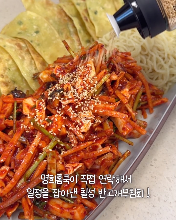 칠성 반고개무침회는 내일 낮 12시 칼 마감 될 예정이예요 ☝️ 다행히 오늘 날이 덥지않고 선선해서 조금 더 신선하게 받아보실 것 같아요 ! 반고개무침회는 냉장으로 보내드리는거 아시죠? 냉동 보관 하지 마시고 이틀 안에 드세요 신선 채소들과 데친오징어, 논고동 납작만두 , 모두 냉장 ⭕️ 이번에 5/1 근로자의 날로 택배 배송이 없어 빠르게 발송 마감될 예정이니 1년동안 기다려 주셨던 분들 이번 일정 놓치지 마세요 💁🏻♀️ 내일 마감 전에 스토리나 피드로 마지막 안내 한번 드릴게요 🫶 1년만에 보여드렸지만 찾아주신 분들 모두모두 감사드려요 💛 ________________________ ⭐️ 칠성 반고개무침회 ( 냉장 배송 ) ▫️신선한 재료들로 당일조리>포장>판매 ▫️고춧가루베이스로 10여가지 재료들을 정확하게 계량숙성 ▫️매콤하고 깔끔한 특제소스 ▫️튀기듯 구워서 반고개무침회랑 같이먹으면 더 맛있는 납작만두 📍일정 : 4/29 수요일 낮 12시 최종마감 📍구매 : @myunghee_homecook 제 프로필 하단 링크에서 구매 가능하세요 📍구성 : 1-2인세트 /2-3인세트 📍배송 : 평일 낮 12시 이전 주문건 당일발송 / 롯데택배 * 주문폭주시 배송 지연 될 수 있습니다 * 배송 문의는 네이버 톡톡으로 문의 주세요 🌈 구매완료 이벤트 명희홈쿡에서 소개해드리는 칠성 반고개 무침회 7차를 구매하시고 기대가득 정성스러운 구매완료 댓글을 달아주시는 분들또는 후기를 남겨주시는 분들중 추첨을 통해 쿠팡 기프트 카트를 보내드립니다 ❤️ ✔️ 스토리 구매인증 또는 후기를 남겨주시는 분들 당첨확률 up! ✔️ 후기 또는 구매 완료 댓글 친구 소환 남겨주시는 분들 당첨확률