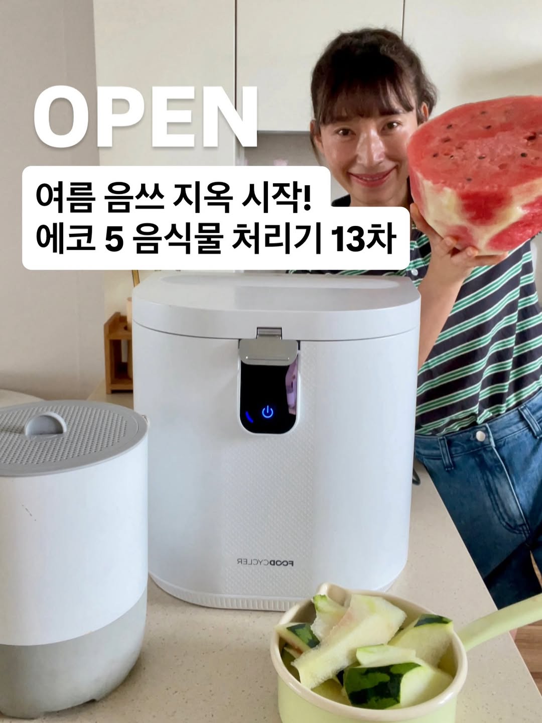 올 여름엔 음쓰 지옥 탈출하셔야죠 바이타믹스와 캐나다 푸드 사이클러 합작품 에코 5 음식물 처리기 13차 공구 내일 오전 10시 오픈입니다 —————————————————- ✅ 기 간 : 4. 27 오전 10시 ~ 27일 ✅ 구매 사은품 - 구매자 전원 : 필터 1팩 추가 증정 - 선착순 구매 20분 : 버킷 세척솔 증정 ✅ 구매옵션 - 에코5 본품 (5리터 버킷 / 뚜껑, 필터 1팩 포함) - 버킷 5리터 단품 : 뚜껑 미포함 - 탄소 필터 4팩 - 신상 버킷 세척솔 ✅ 배 송 : 오전 주문 바로 발송 / 오후 주문 익일 순차 발송 ✅ 무상 as 3년 / 모터 10년 : 푸드 사이클러 코리아에서 진행 (02 - 566 - 2611) ——————————————————————— 🧀 2023년 12월 에코5 국내 첫 공구 진행 후 벌써 13차네요 운명처럼 다가와 인생템이 된 에코 5 음식물처리기! 3년간 사용하면서 단 한 번의 후회없이 앞으로도 이런 인생가전이 있을까 싶을 정도로 정말 만족하며 사용하고 있어요 🧀 가리는거 없이 다 때려넣어도 특허받은 36개의 강력한 칼날 시스템이 일반 음쓰는 물론 동물뼈 (소뼈는 투입불가), 갑각류, 조개껍데기, 아보카도 씨, 망고 씨, 복숭아 씨, 밤껍질, 옥수수대, 티백, 커피드립백, 키친타월, 커피찌꺼기 등 주방에서 나오는 거의 모든 쓰레기를 친환경 퇴비로 만들어줍니다 🧀 음식물쓰레기로 분리되지 않아 별도로 버려야했던 딱딱한 것들까지 한 번에 처리되다 보니 치킨뼈, 과일 씨, 생선뼈, 갑각류 껍데기 등이 휴지통에서 썩을 일도 날파리 생길 일도 냄새 날 일도 없어 삶의 질이 우주 끝까지 상승했어요 🧀 국내 유명 브랜드 제품들 사용해봤지만 분쇄력에서 월등하게 차이가 납니다 🧀에코5의 경우 분쇄와 건조가 동시에 진행되지만 타 브랜드들은 건조를 먼저 하고 그 다음에 분쇄가 되다 보니 전분이 많은 밥이나 면 등을 넣거나 조금이라도 크기가 큰 재료가 들어가면 딱딱하게 굳으면서 칼날에 걸리는 경우가 생기더라고요 그럼 칼날이 헛돌면서 분쇄는 안되고 바짝 건조만 되어 나오기도 합니다 🧀 바나나 껍질도 작게 잘라 넣어야 처리가 되더라고요 🧀 이와 반대로 에코5는 대충 막 때려넣어도 분쇄되어 나와요 어떤 분이 실수로 참치캔 뚜껑을 넣어 돌렸는데 다 갈려 나와서 깜짝 놀랐다고 하시더라고요 🧀 그리고 스티커 같은 경우 모르고 넣어도 갈리지않고 그대로 나옵니다 ㅎㅎ 아보카도 껍질에 붙어있는 스티커 안 떼고 그냥 넣었는데 고대로 나오더라고요 ㅎㅎ 🧀 제품 관련 자세한 내용은 이 피드의 영상 또는 제 프로필 맨 앞 고정 게시물을 참고해주세요 🧀 사용 간 자주 묻는 질문은 프로필 링크 PDF 파일로 정리해놓았으니 한 번씩 읽어주세요 ————————————————————— 🥑 고객센터 문의가 필요한 사항 1. 버킷 하단에 윤활유가 칠해져 있습니다 간혹 이 윤활유가 묻어 나오는 경우가 있는데 한 두번 닦으면 안 나와야 정상이에요 계속해서 검은 기름이 묻어나와 불편하다면 이때는 고객센터 문의해주셔야 합니다 2. 딱딱한 것이 들어가면 갈리면서 사이클 초반에 드르륵….하는 소리가 나고 전분, 수분이 많아 결과물이 덩어리졌을때는 사이클 중반과 후반부에 끼익…거리는 소리가 날 수 있습니다 이는 일시적인 현상으로 없어지는게 일반적입니다 다만, 삐이익….거리는 쇠소리가 쉴새없이 계속해서 난다면 이때는 고객센터 문의해주세요 3. 고온건조 분쇄식 음식물처리기로 전분, 당분이 많은 재료가 많이 들어가면 (밥, 면, 떡, 바나나, 포도, 수박 등의 껍질이 아닌 과육) 굳을 수 있고 국물 등 수분이 많으면 걸쭉한 결과물이 될 수 있어요 하지만 위 특정한 음쓰가 많이 들어가지 않아도 매번 굳거나 매번 물처럼 걸쭉하게 된다면 이때도 고객센터 문의가 필요합니다 ——————————————————————— 🍐실행 간 시큼한 냄새가 난다면 필터 교체 전 다음 행동을 주세요 -시트러스류 껍질 또는 커피찌꺼기, 딱딱한 껍질 등만 넣고 사이클을 실행한다 냄새가 나다가도 사라짐 - 필터통을 꺼내 내부 필터를 신문 등에 펼쳐 하루 말린다 - 또는 버킷에 아무것도 넣지말고 사이클을 실행 필터를 말려본다 - 필터 냄새 제거에 강력한 음쓰 순서 커피찌꺼기 > 시트러스 과일 껍질 > 밤껍질 > 종이류 추가적인 문의는 덧글주세요 감사합니다 #음쓰 #음식물처리기 #에코5재단공주