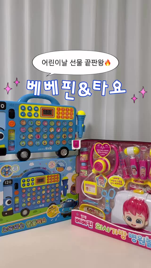 어린이날 선물로 추천하는 베베핀 의사가방 병원놀이와 타요 한글버스. 역할놀이를 통해 언어발달과 사회성을 키울 수 있는 인기템입니다.